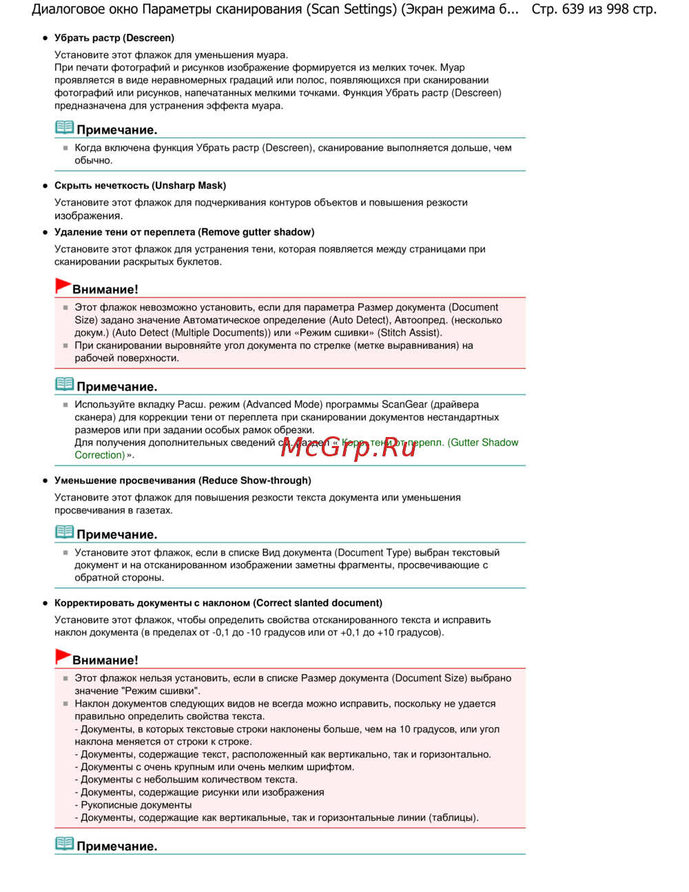 Стр. 639 из 998 стр.Диалоговое окно Параметры сканирования (Scan Settings) (Экран режима б...