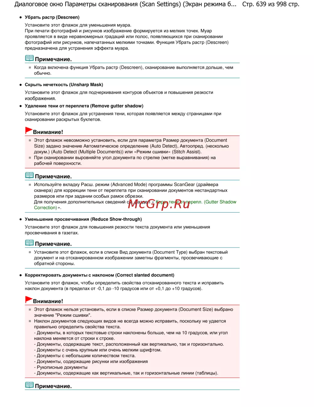 Canon Pixma MG5140 — настройки сканирования: Устранение муара и коррекция изображений [639/998]