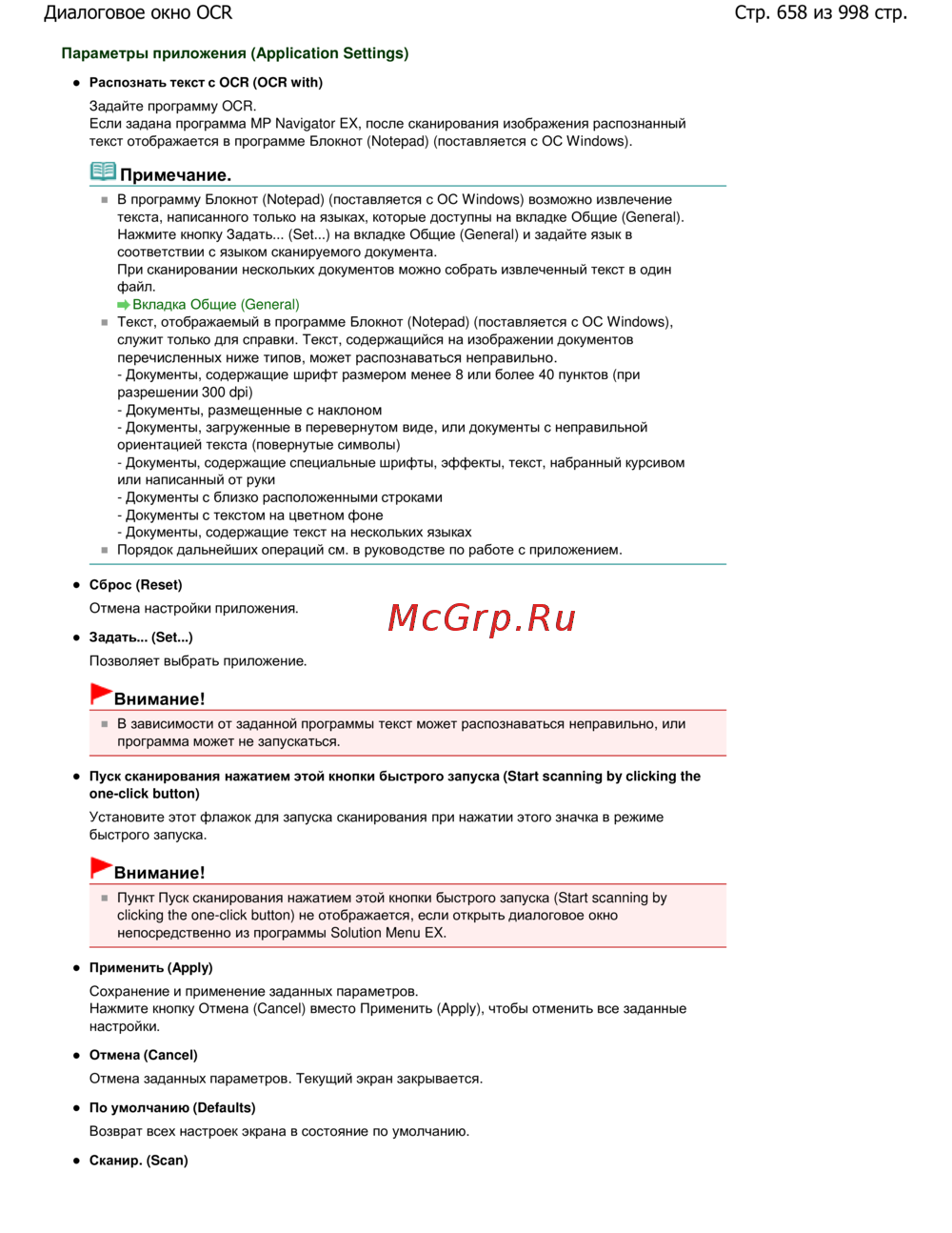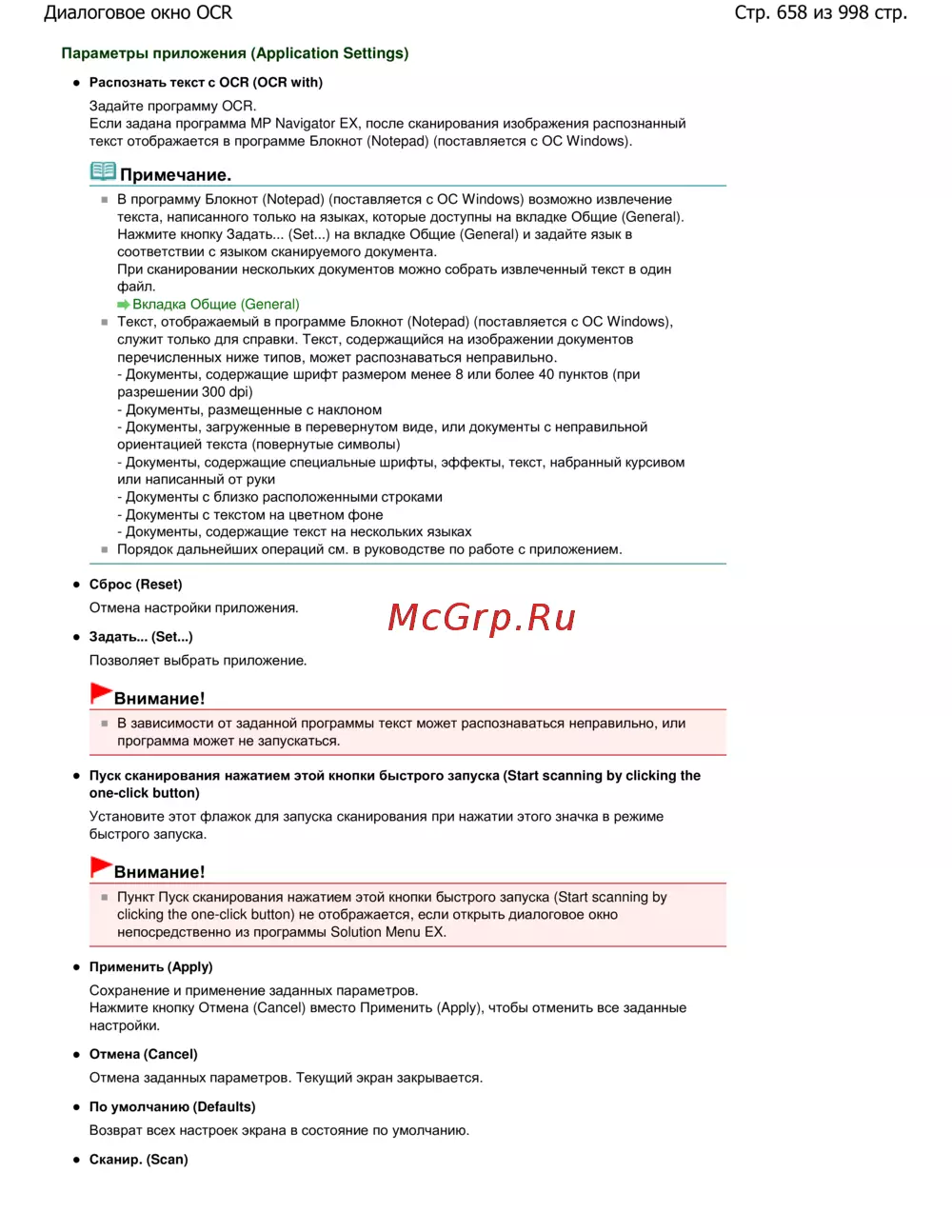 Canon Pixma MG5140 — настройки OCR: Параметры распознавания текста при сканировании [658/998]