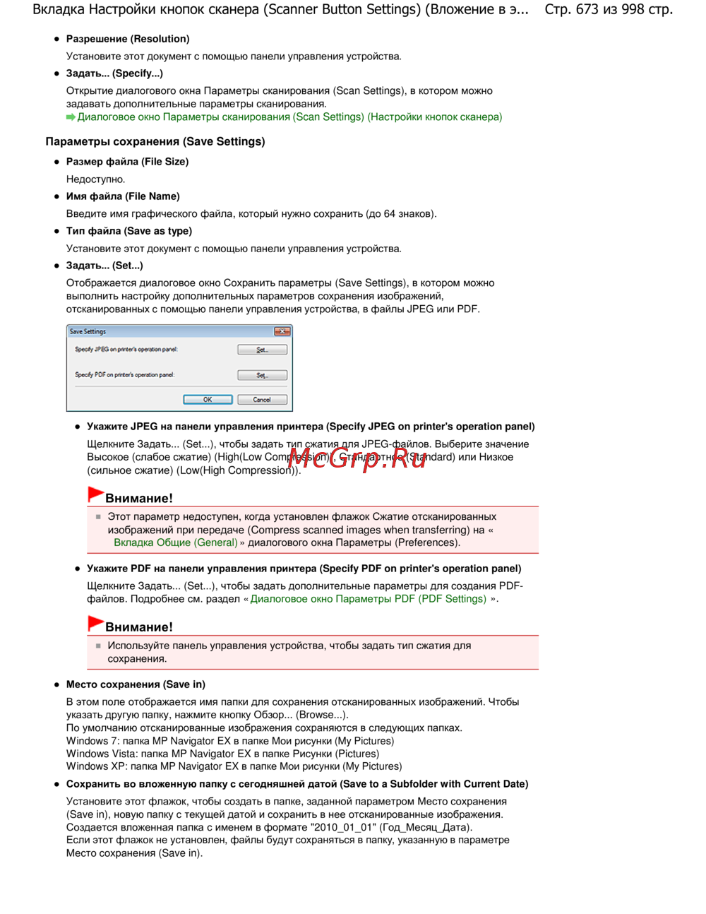 Стр. 673 из 998 стр.Вкладка Настройки кнопок сканера (Scanner Button Settings) (Вложение в э...