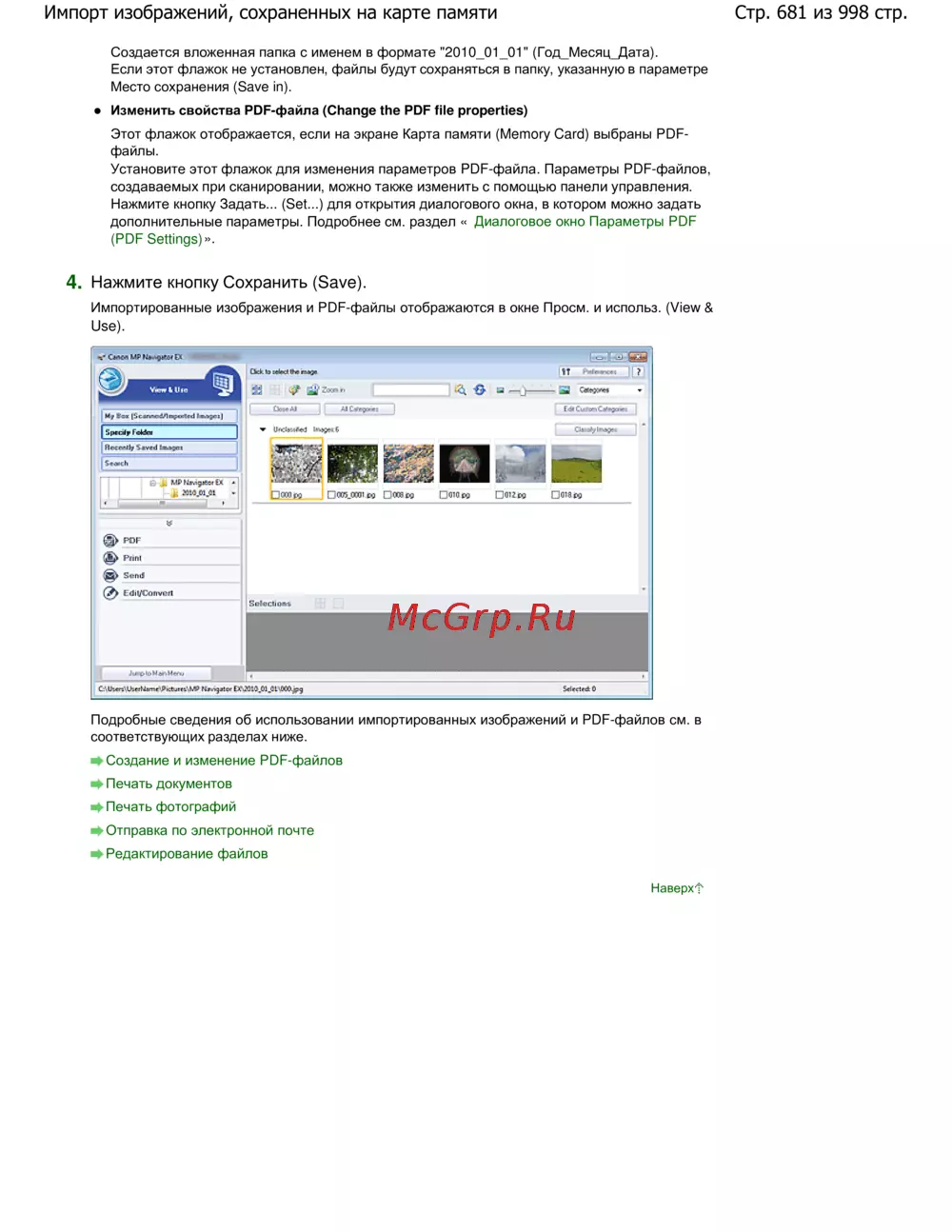 Стр. 681 из 998 стр.Импорт изображений, сохраненных на карте памяти