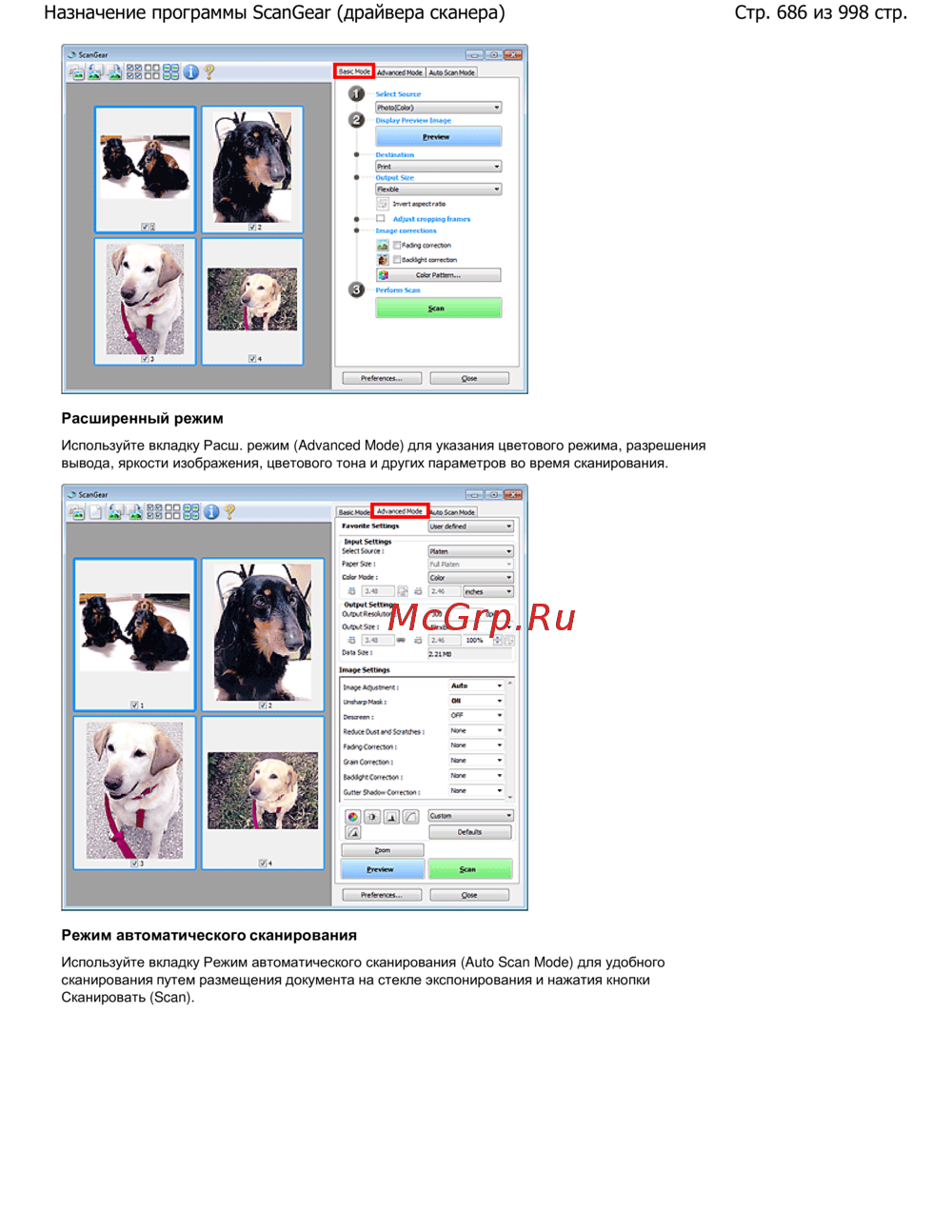 Стр. 686 из 998 стр.Назначение программы ScanGear (драйвера сканера)