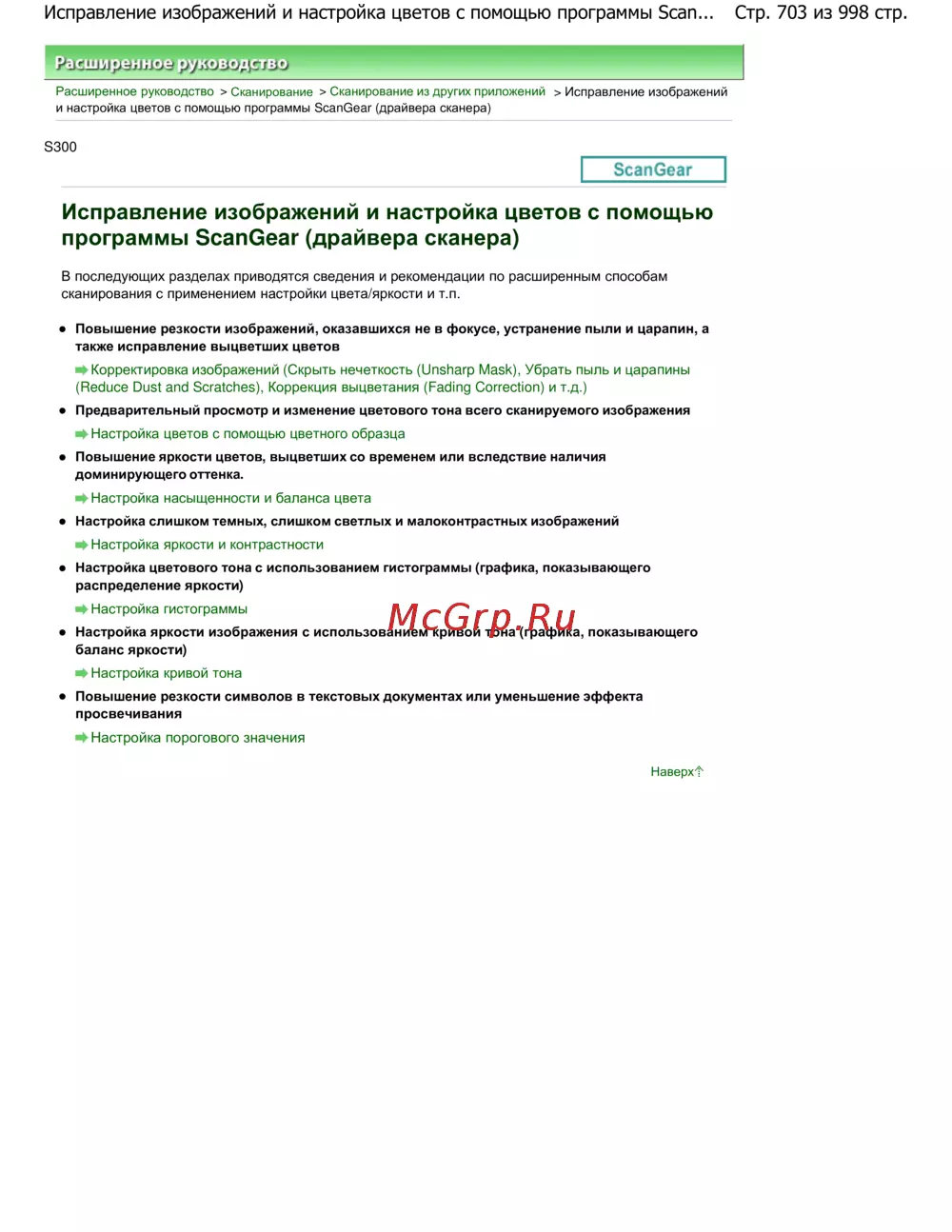 Стр. 703 из 998 стр.Исправление изображений и настройка цветов с помощью программы Scan...