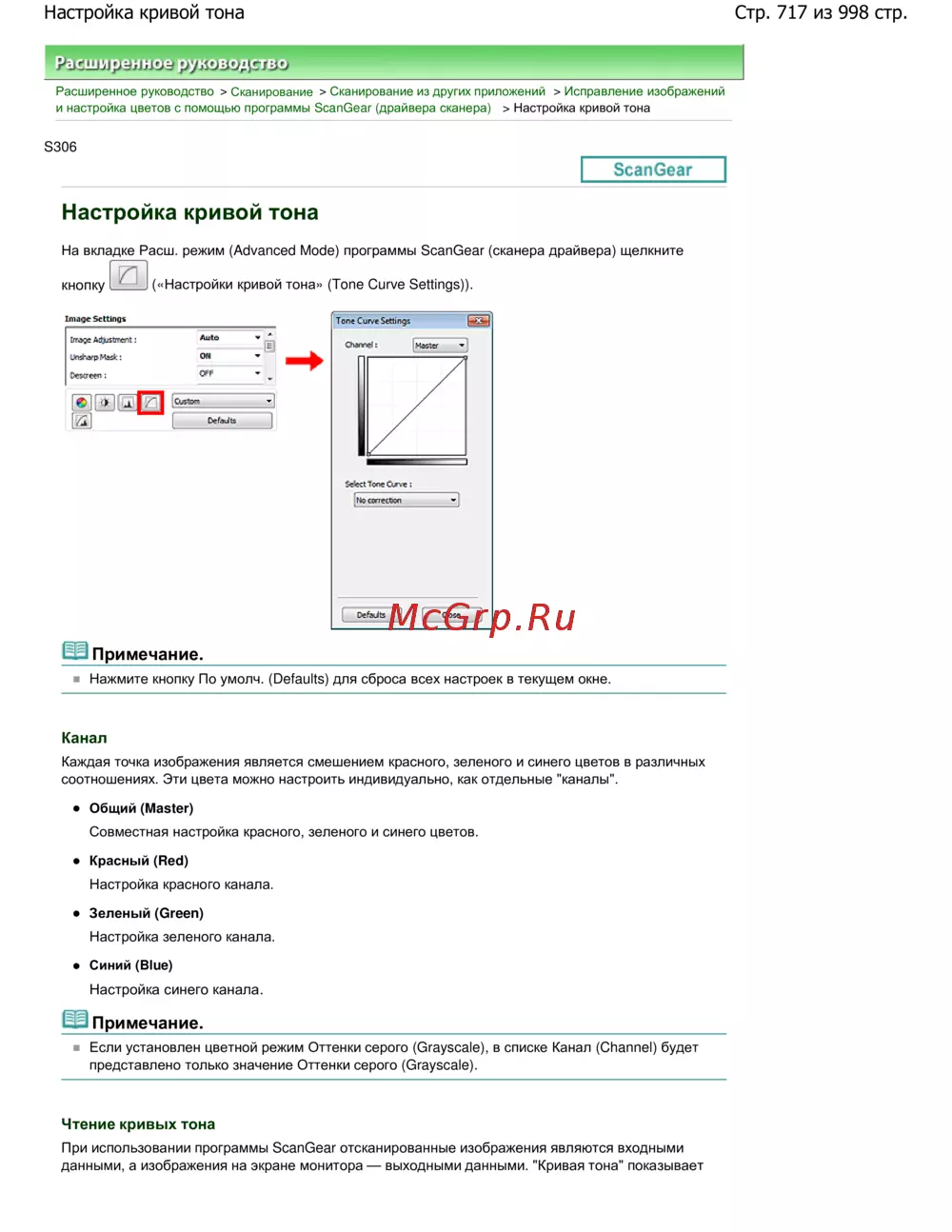 Canon Pixma MG5140 — полное руководство по настройке кривой тона в сканировании [717/998]