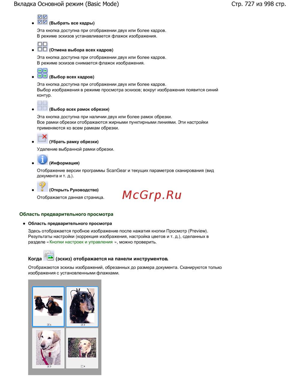 Canon Pixma MG5140 — управление кадрами и рамками в режиме сканирования [727/998]
