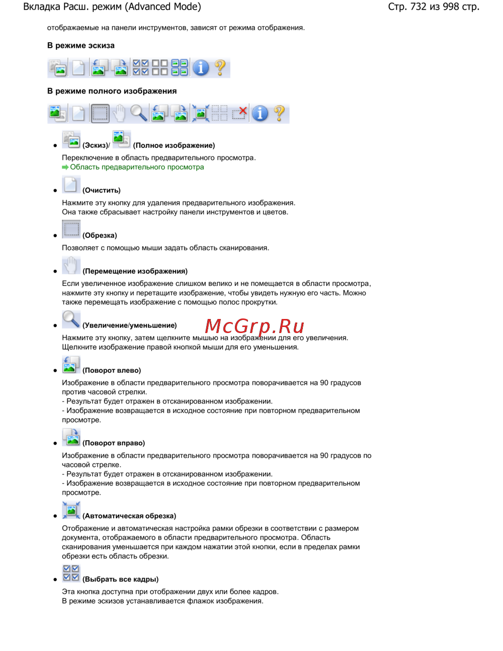 Canon Pixma MG5140 — панели инструментов для просмотра и обработки изображений: режимы, обрезка, поворот [732/998]