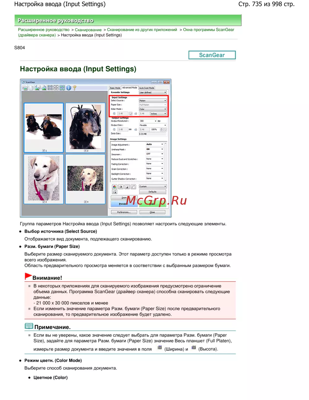 Canon Pixma MG5140 — настройка ввода ScanGear: Руководство по настройке сканирования [735/998]