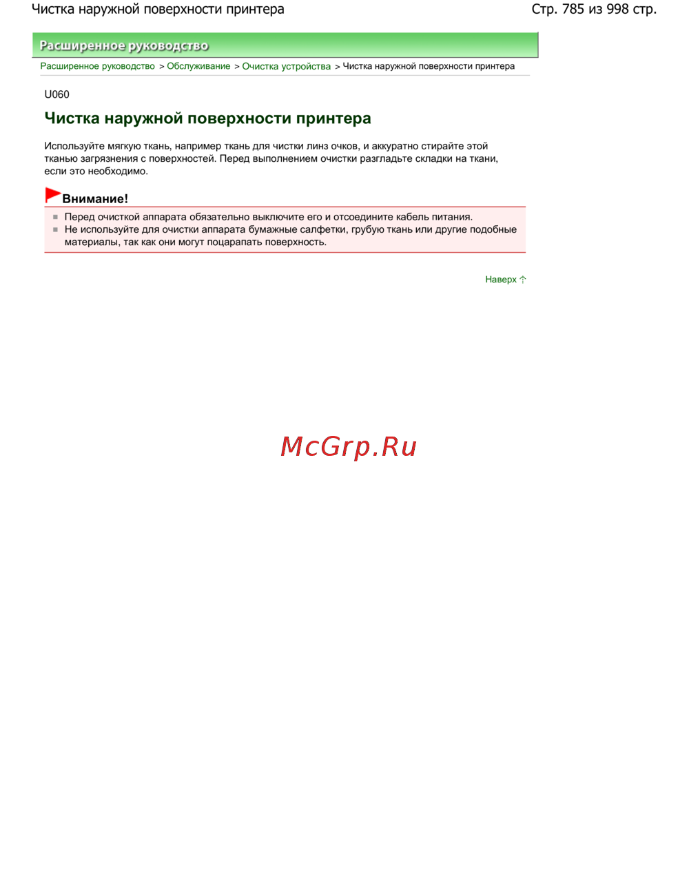 Стр. 785 из 998 стр.Чистка наружной поверхности принтера