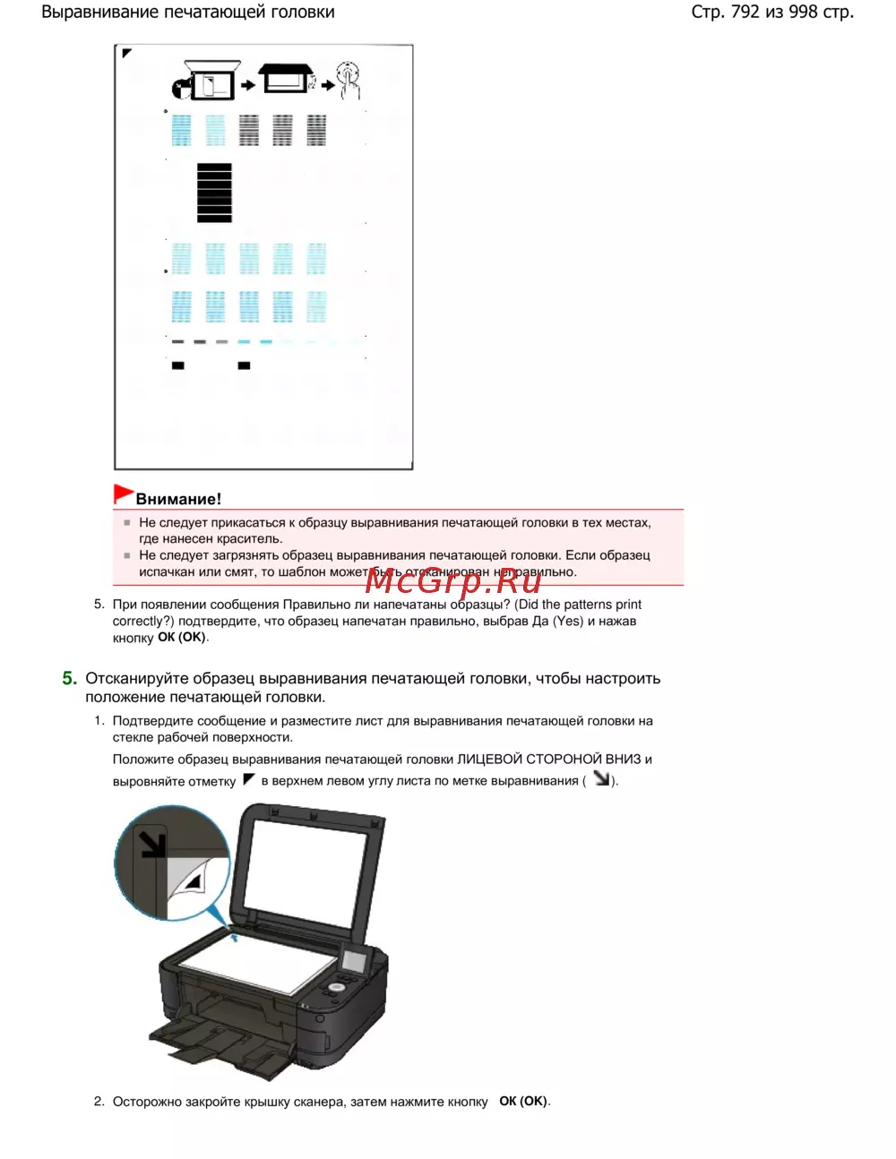 Canon Pixma MG5140 — инструкция по настройке печатающей головки: выравнивание и сканирование образцов [792/998]