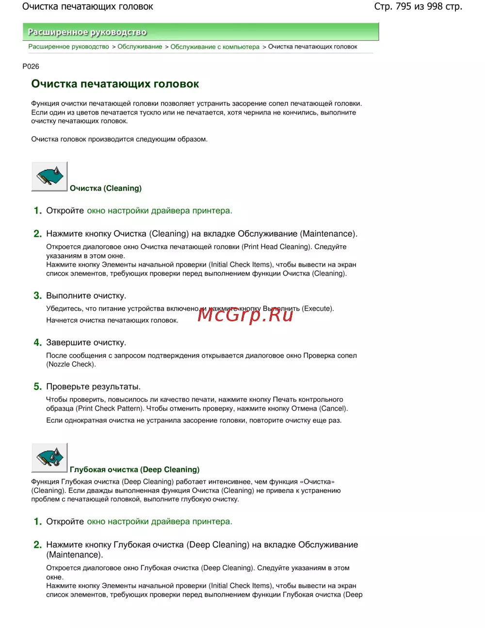 Стр. 795 из 998 стр.Очистка печатающих головок