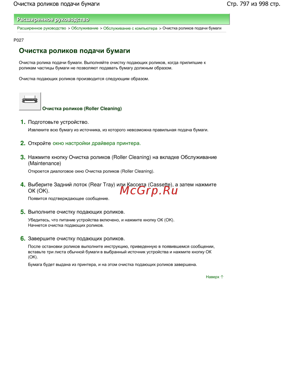 Стр. 797 из 998 стр.Очистка роликов подачи бумаги
