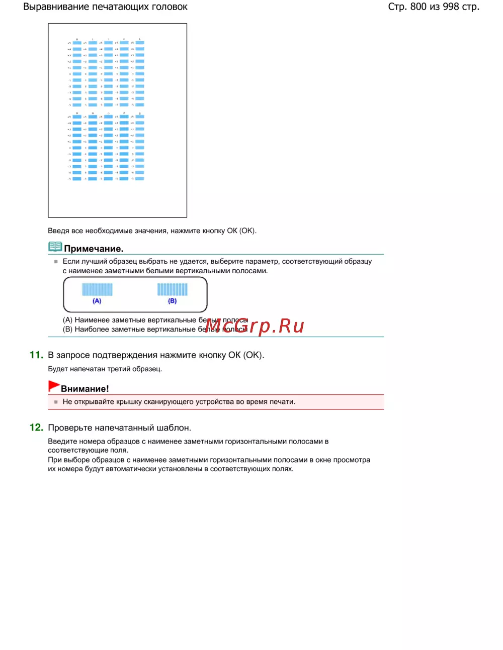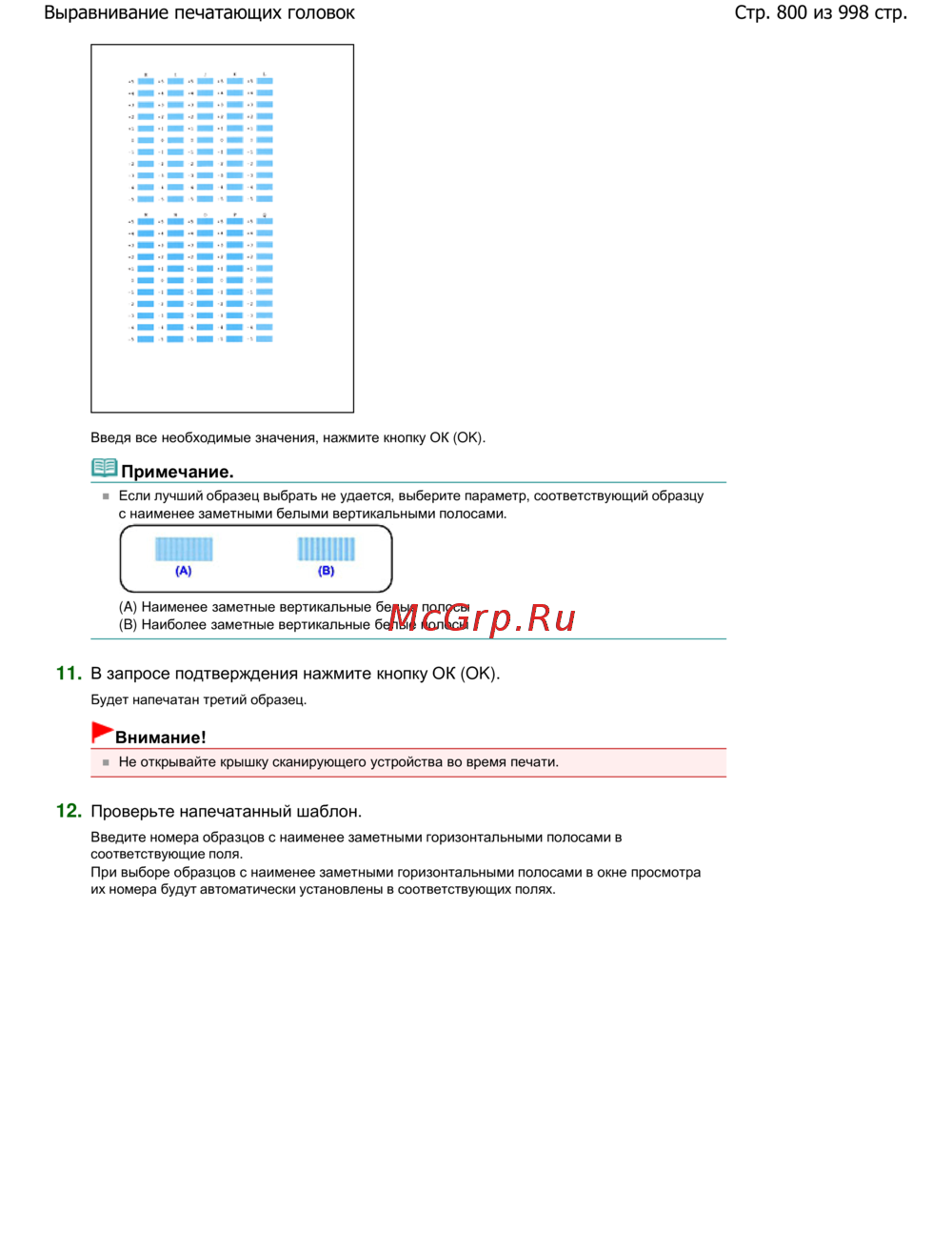 Canon Pixma MG5140 — инструкция по выравниванию печатающих головок и выбору образцов [800/998]