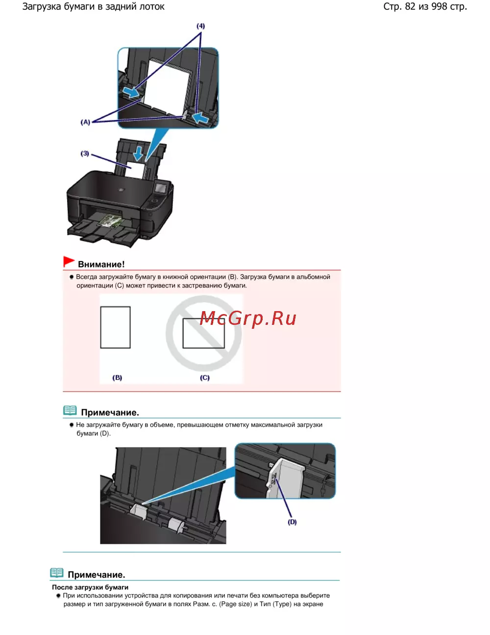 Стр. 82 из 998 стр.Загрузка бумаги в задний лоток
