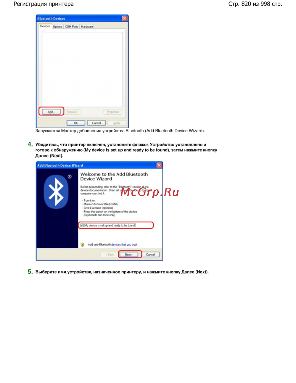 Запускается Мастер добавления устройства Bluetooth (Add Bluetooth Device Wizard).