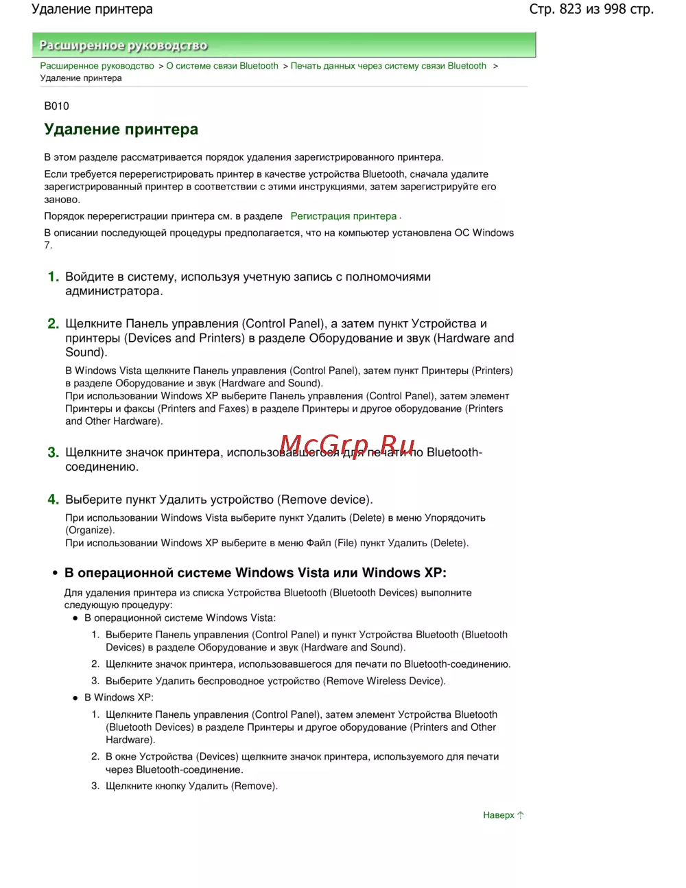 Полная инструкция по удалению принтера через Bluetooth в Windows 7, Vista, XP. Шаги для администратора с учетом разных версий ОС.