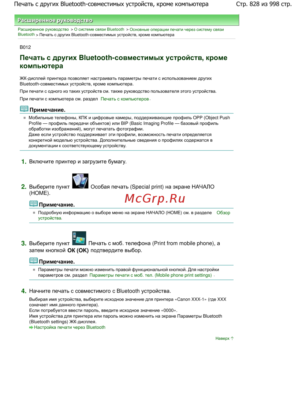 Стр. 828 из 998 стр.Печать с других Bluetooth-совместимых устройств, кроме компьютера