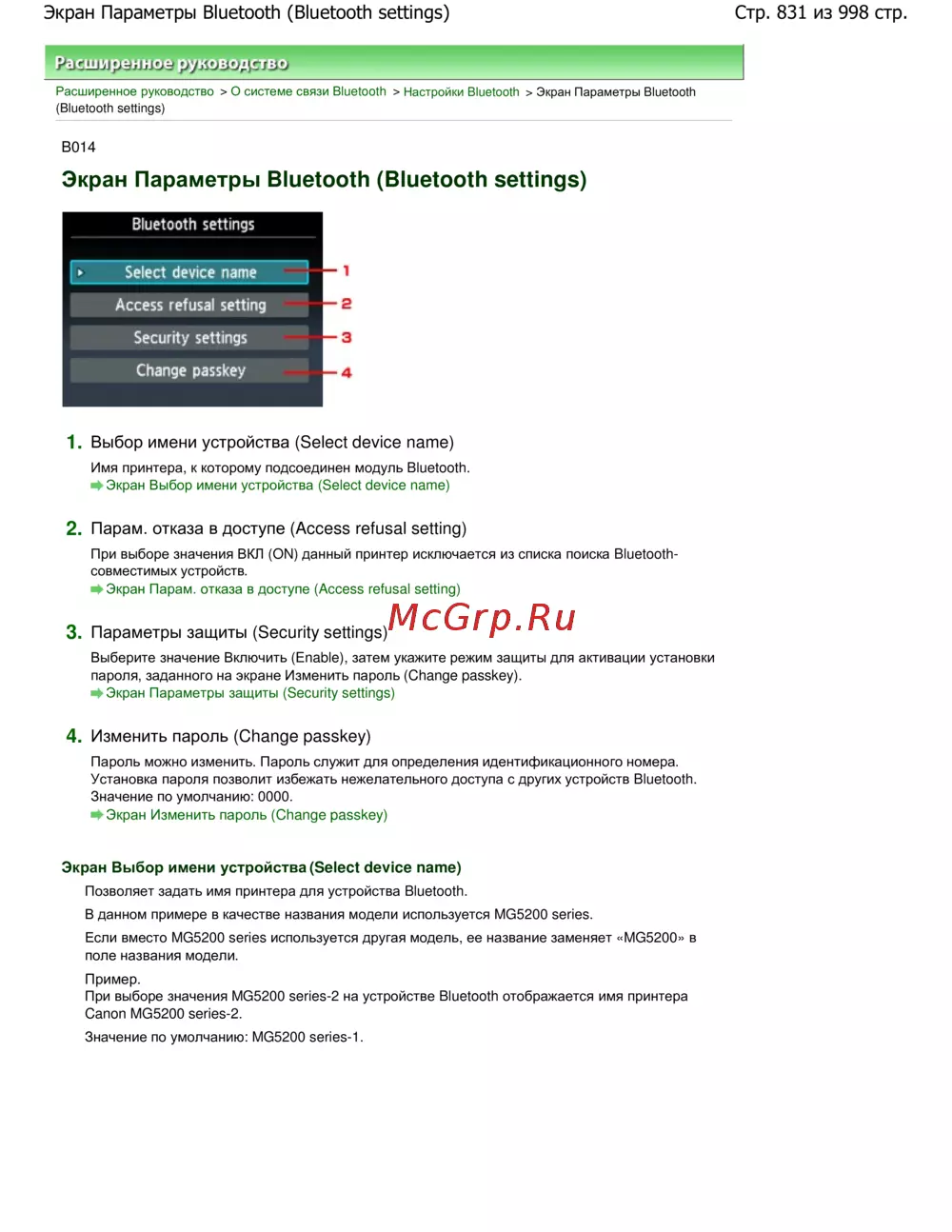 Canon Pixma MG5140 — настройка Bluetooth на принтере: руководство по параметрам и безопасности [831/998]