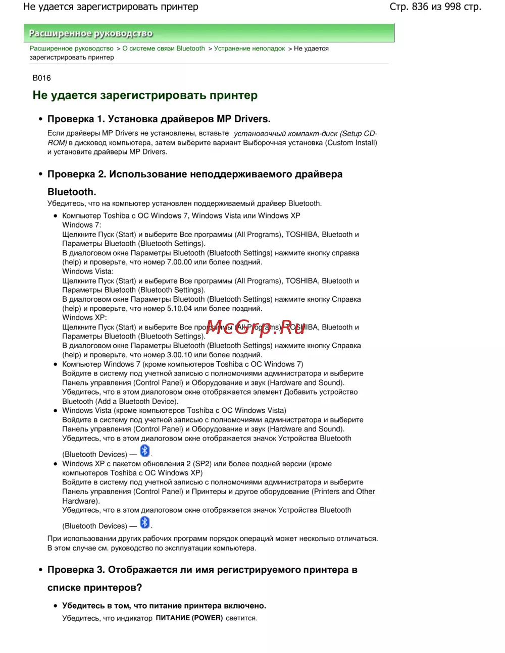 Canon Pixma MG5140 — устранение неполадок с регистрацией принтера через Bluetooth [836/998]