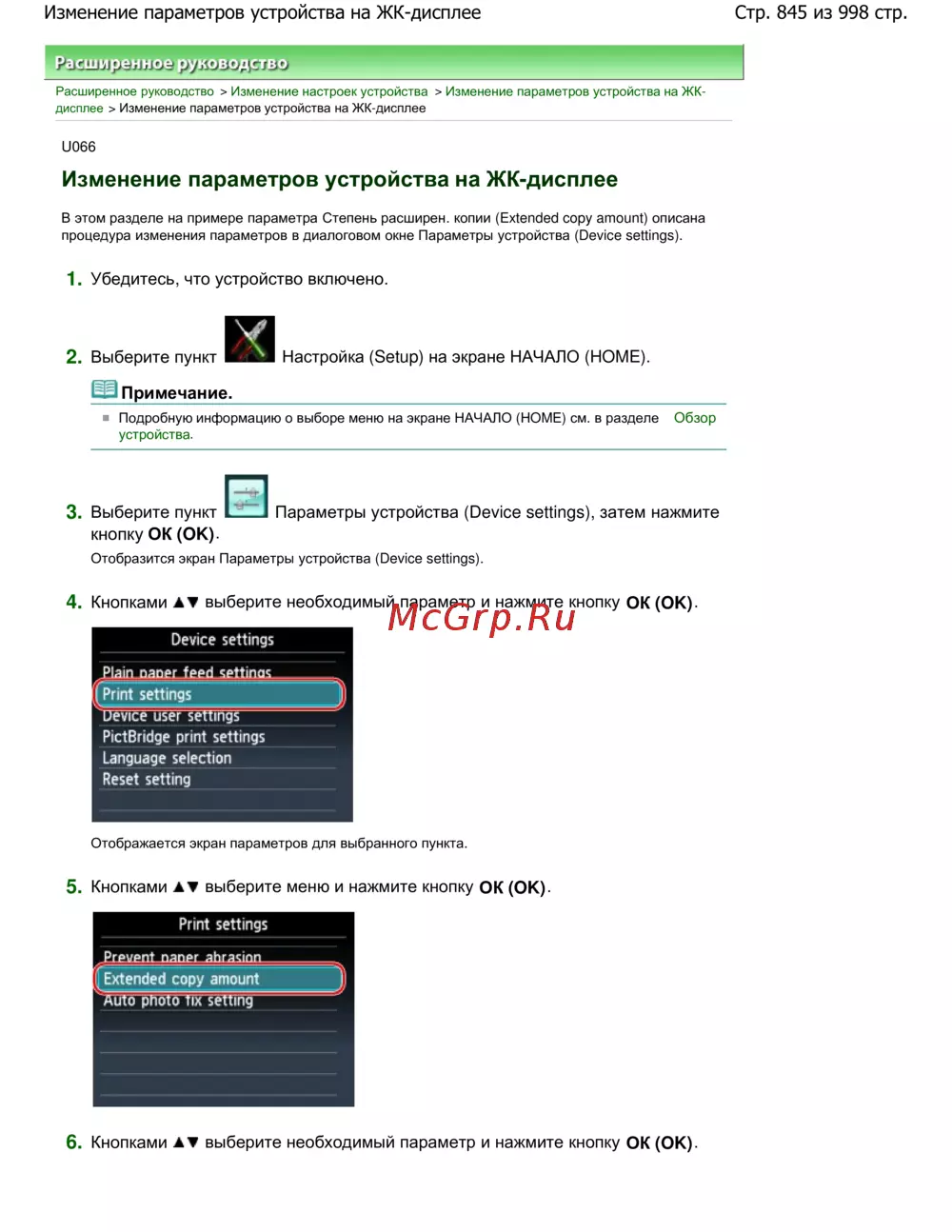 Стр. 845 из 998 стр.Изменение параметров устройства на ЖК-дисплее