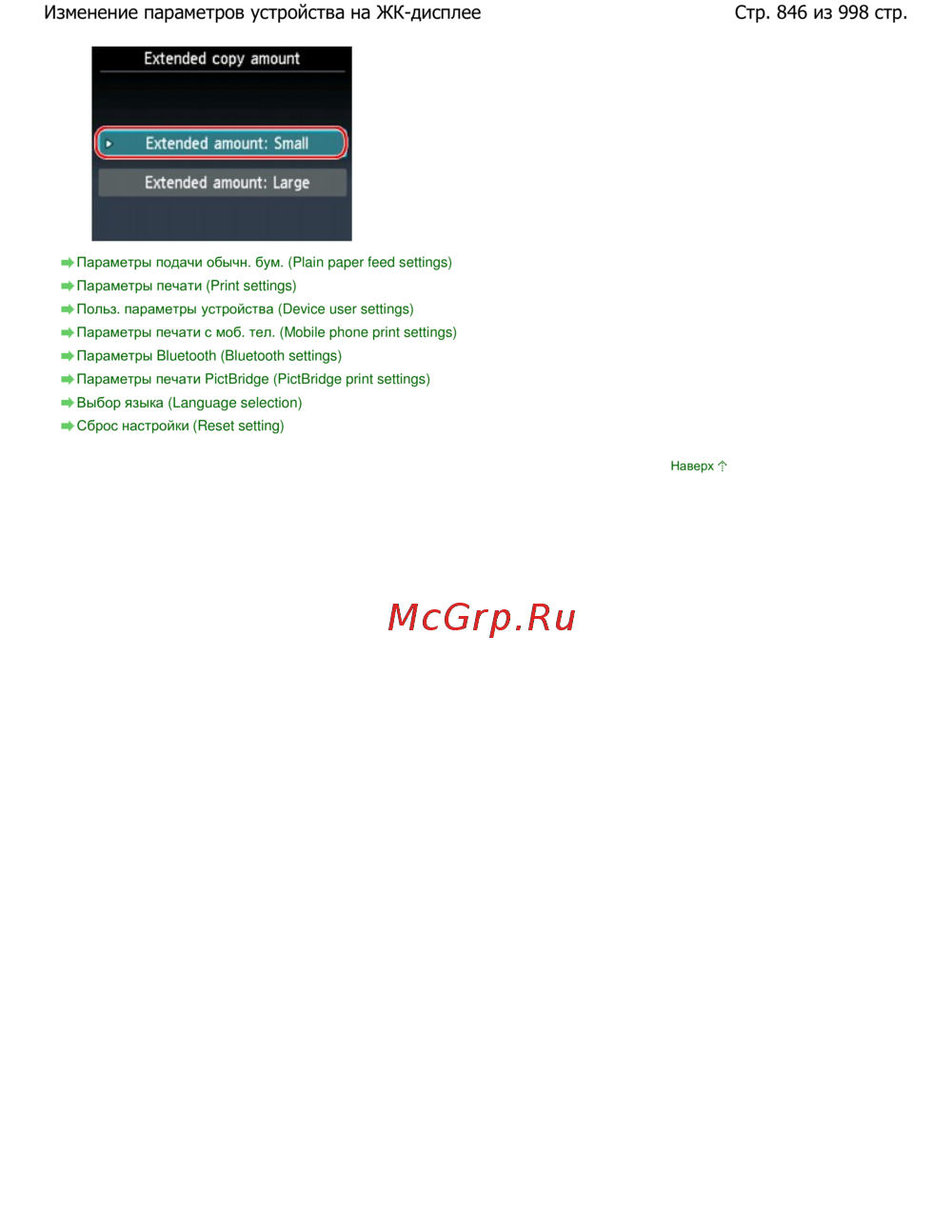 Стр. 846 из 998 стр.Изменение параметров устройства на ЖК-дисплее