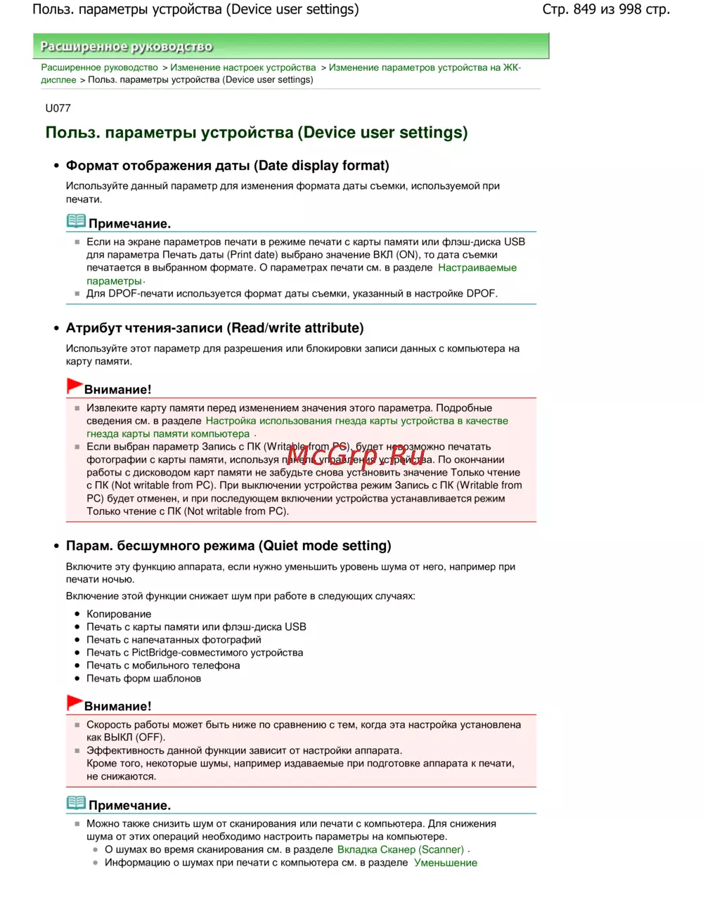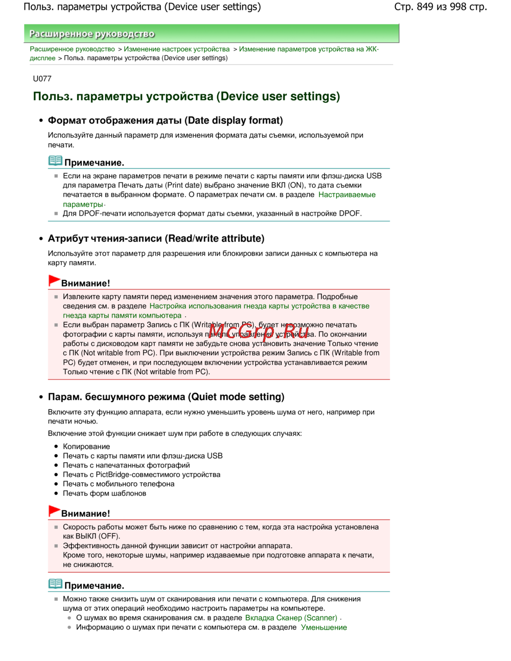 Стр. 849 из 998 стр.Польз. параметры устройства (Device user settings)