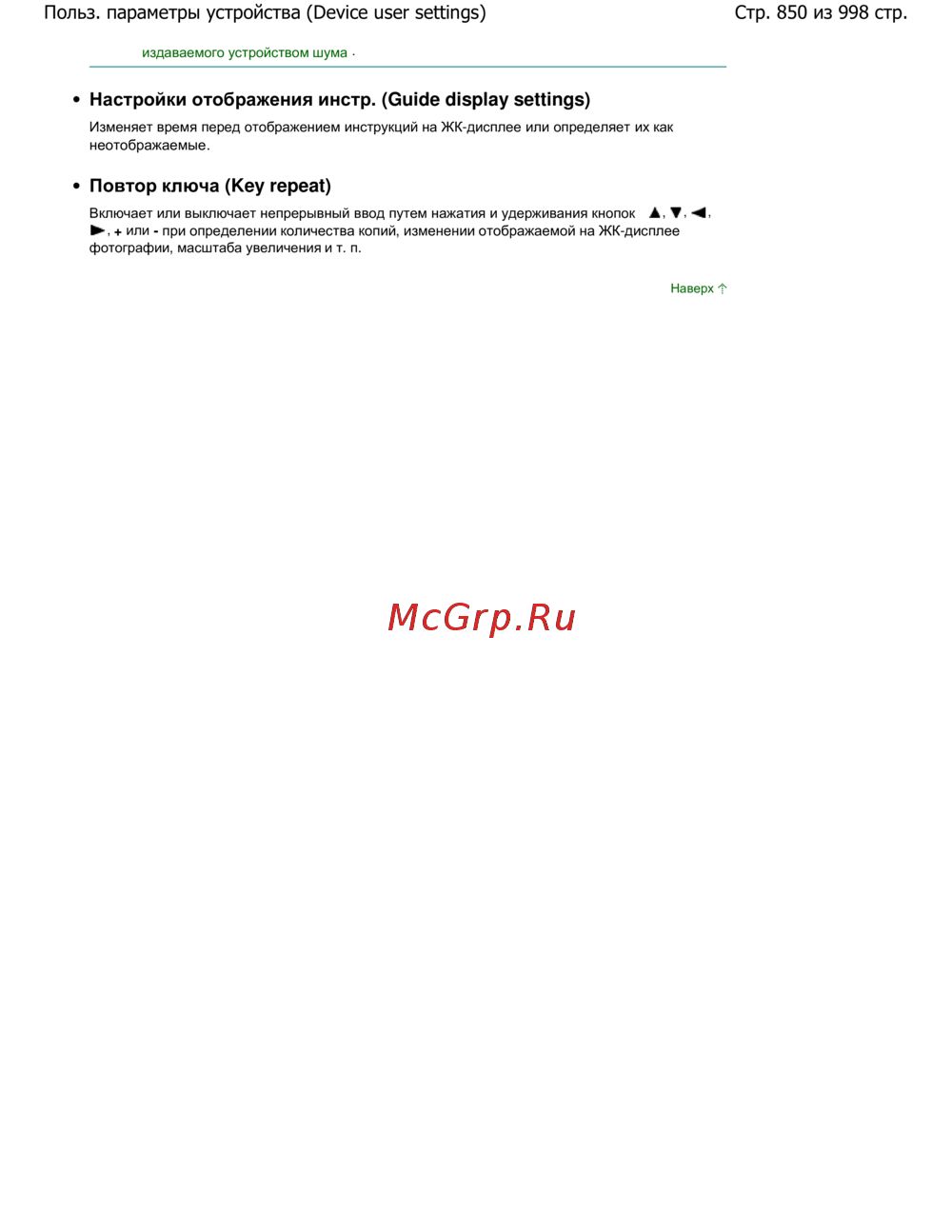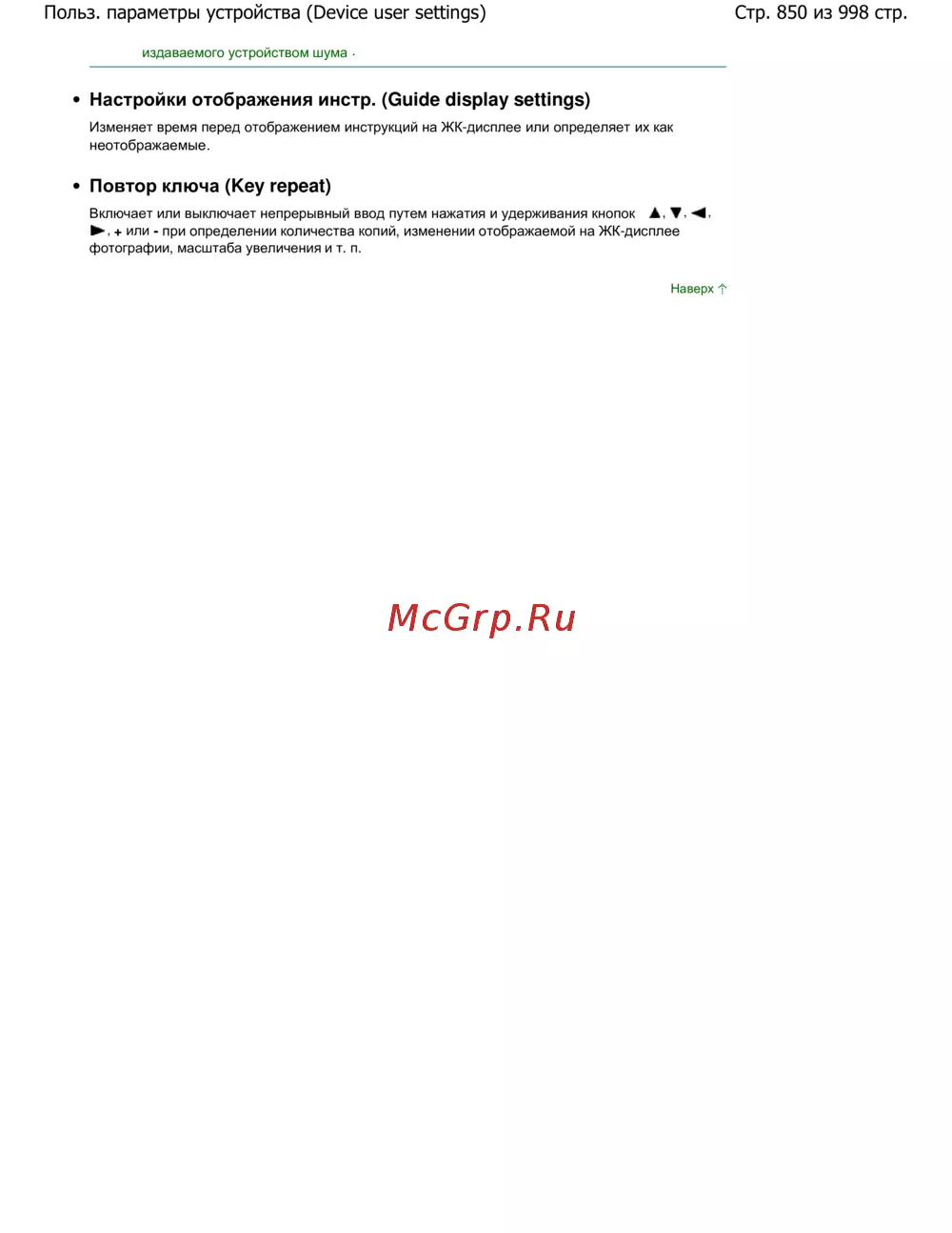 Стр. 850 из 998 стр.Польз. параметры устройства (Device user settings)