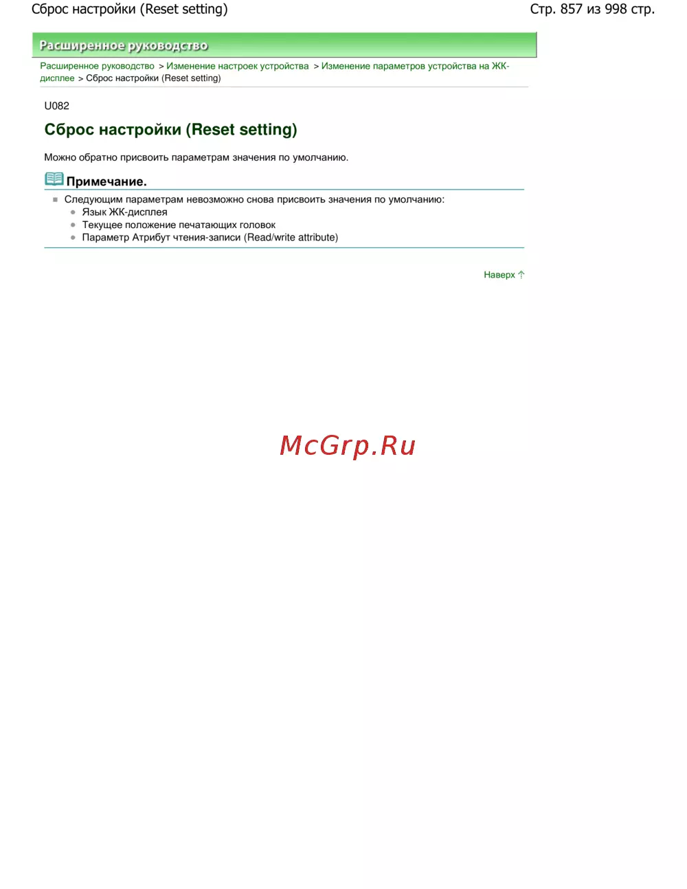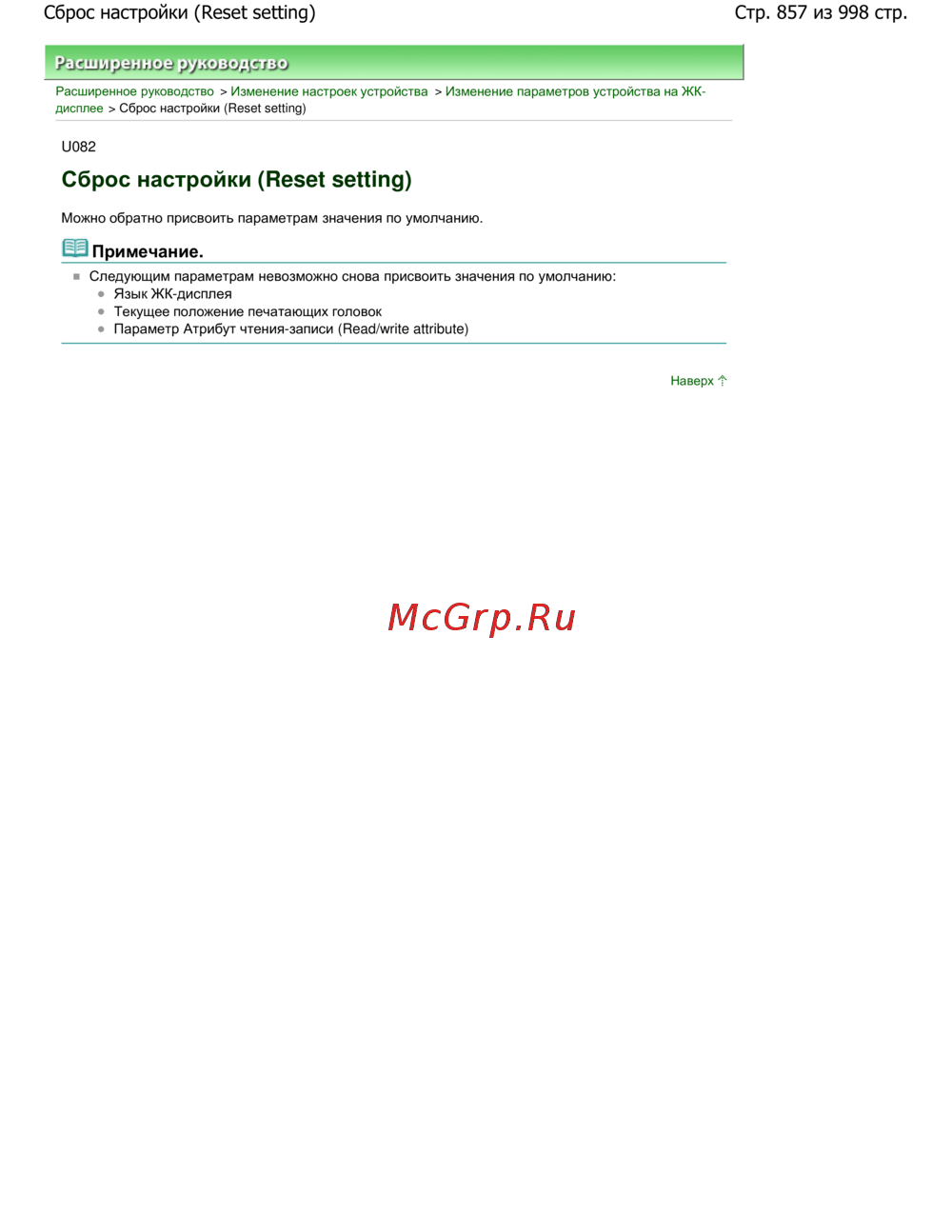 Стр. 857 из 998 стр.Сброс настройки (Reset setting)