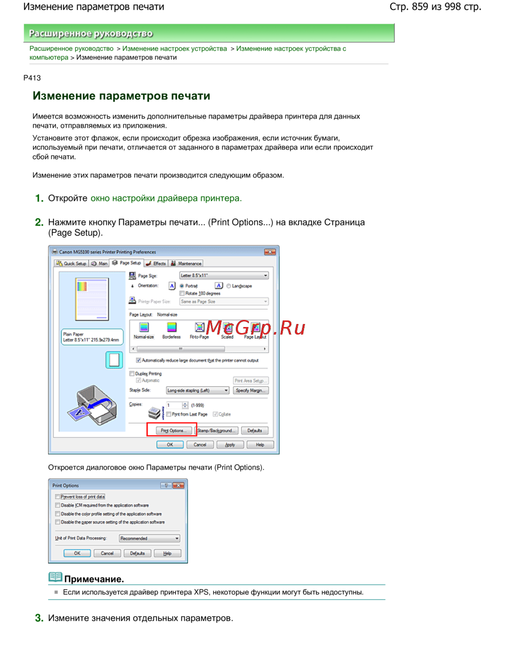 - Стр 983 из 998 стр открытие окна настройки драйвера принтера p.983