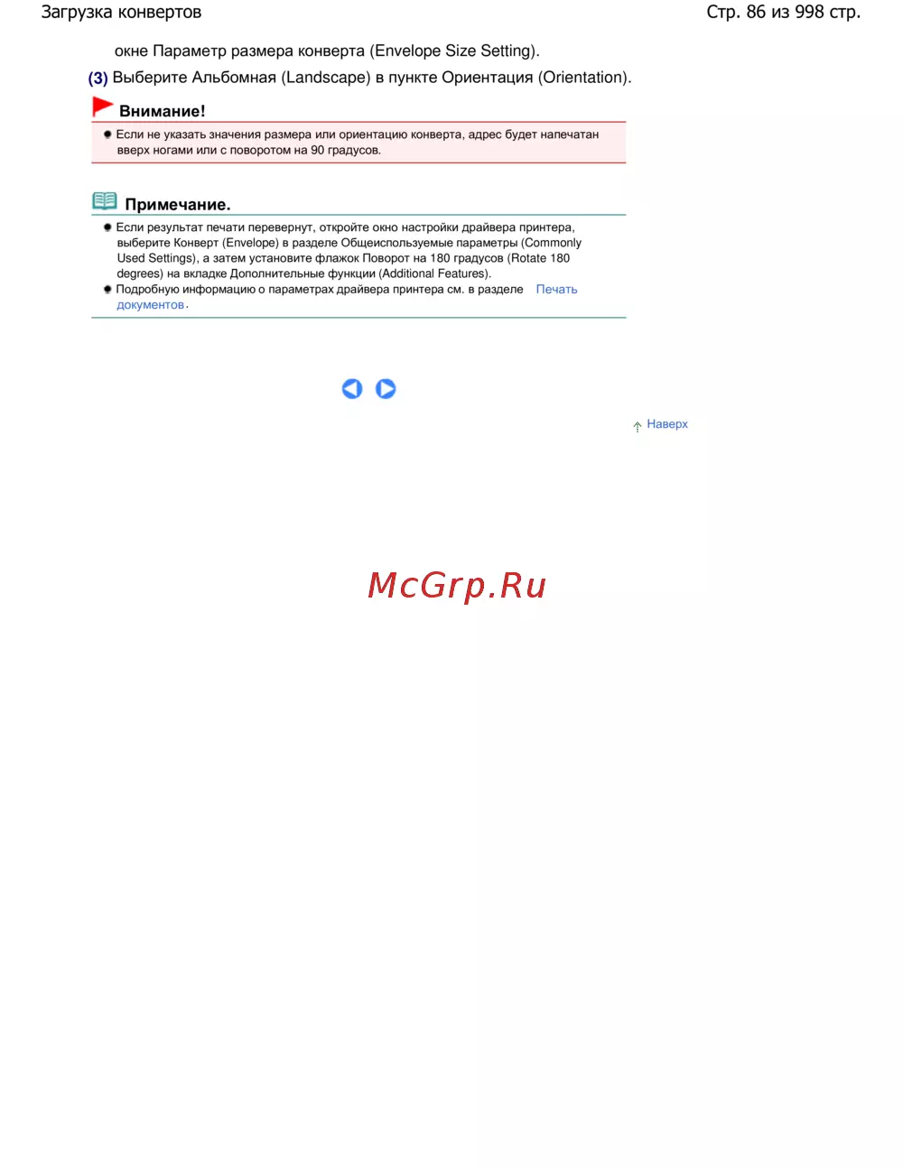 Canon Pixma MG5140 — настройка параметров конверта для печати: размер и ориентация [86/998]