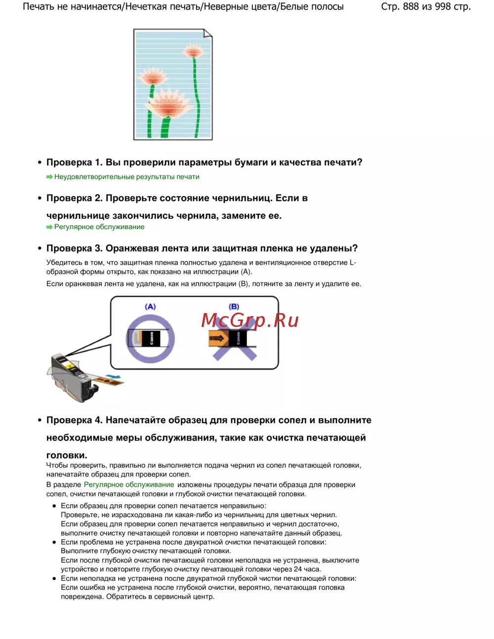 Стр. 888 из 998 стр.Печать не начинается/Нечеткая печать/Неверные цвета/Белые полосы