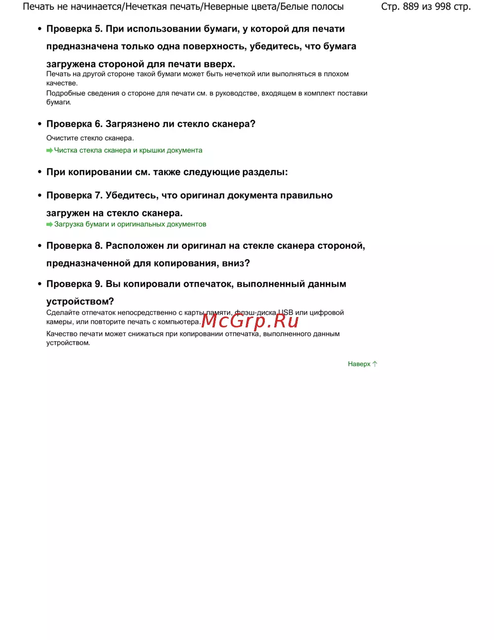 Стр. 889 из 998 стр.Печать не начинается/Нечеткая печать/Неверные цвета/Белые полосы