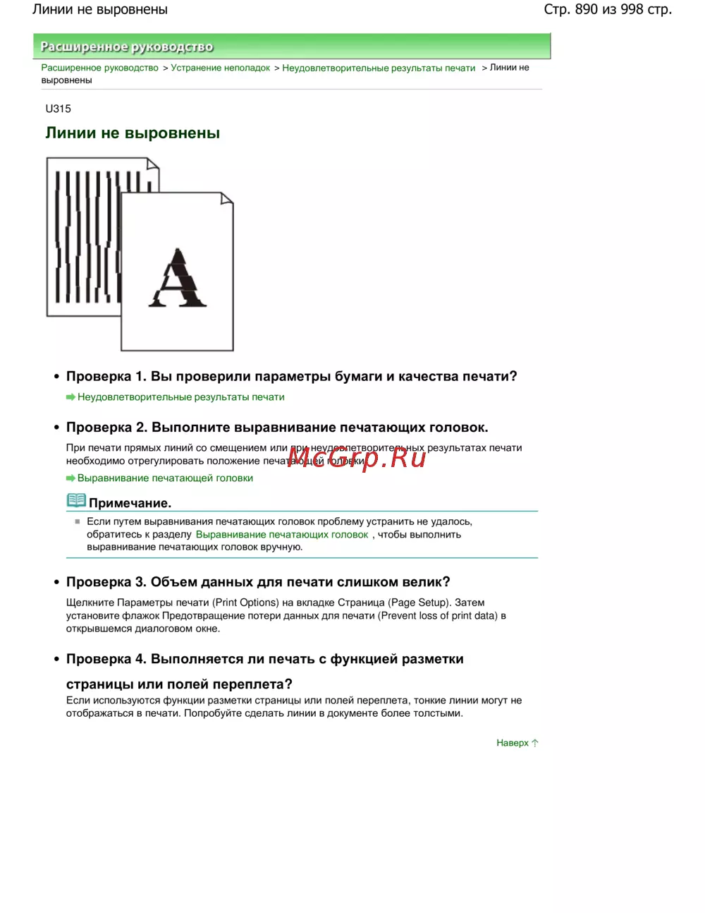 Canon Pixma MG5140 — устранение неполадок печати: выравнивание линий и качество [890/998]