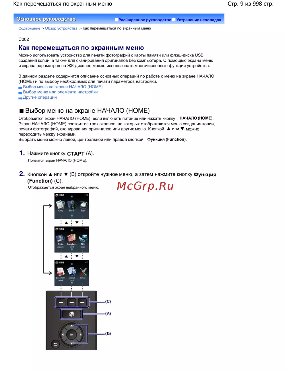 Стр. 9 из 998 стр.Как перемещаться по экранным меню