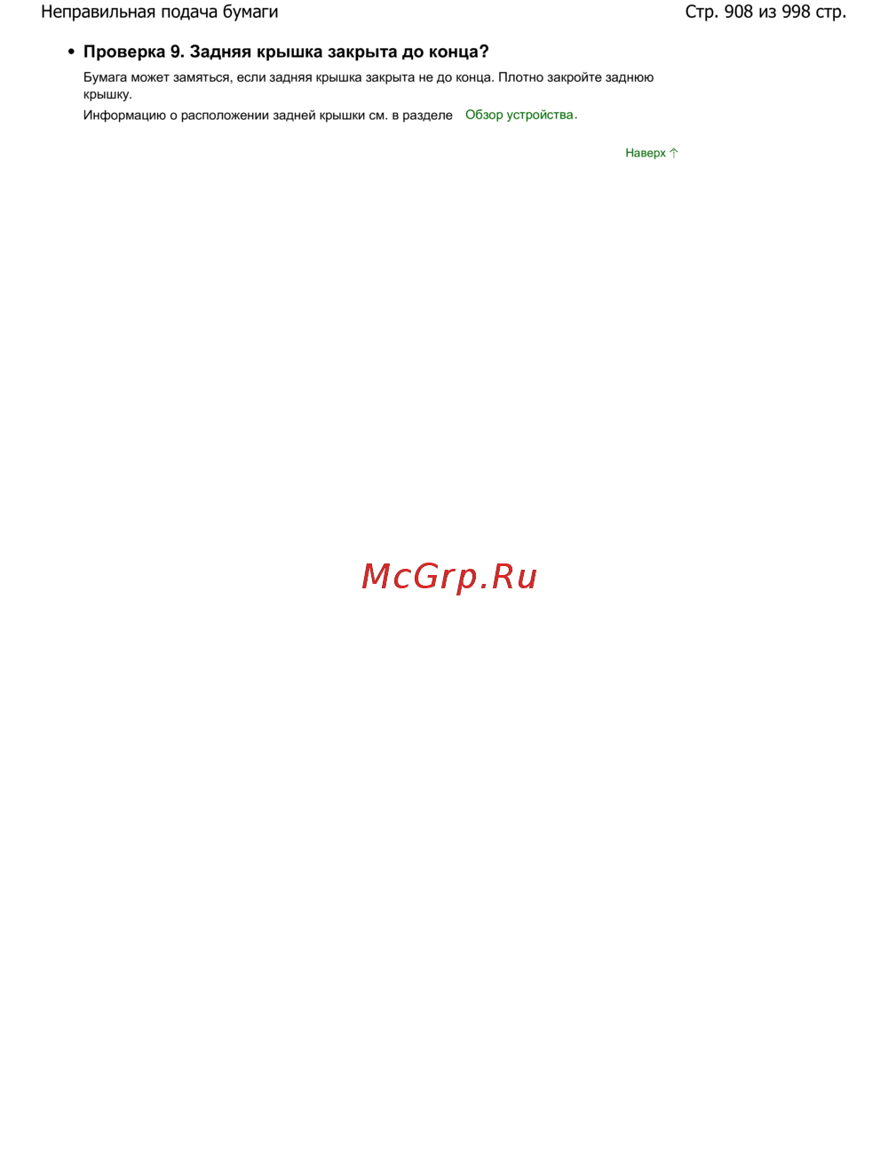 Стр. 908 из 998 стр.Неправильная подача бумаги