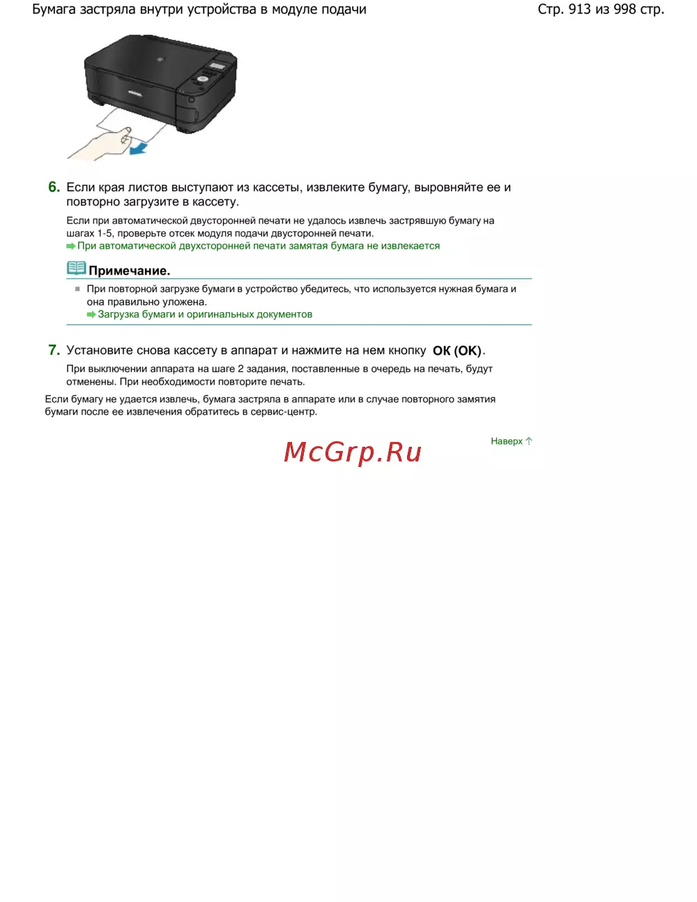Стр. 913 из 998 стр.Бумага застряла внутри устройства в модуле подачи