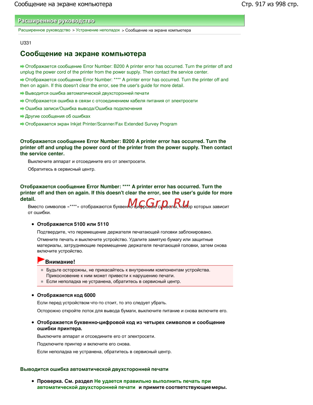 Canon Pixma MG5140 — руководство по устранению неполадок принтера: коды ошибок и действия [917/998]
