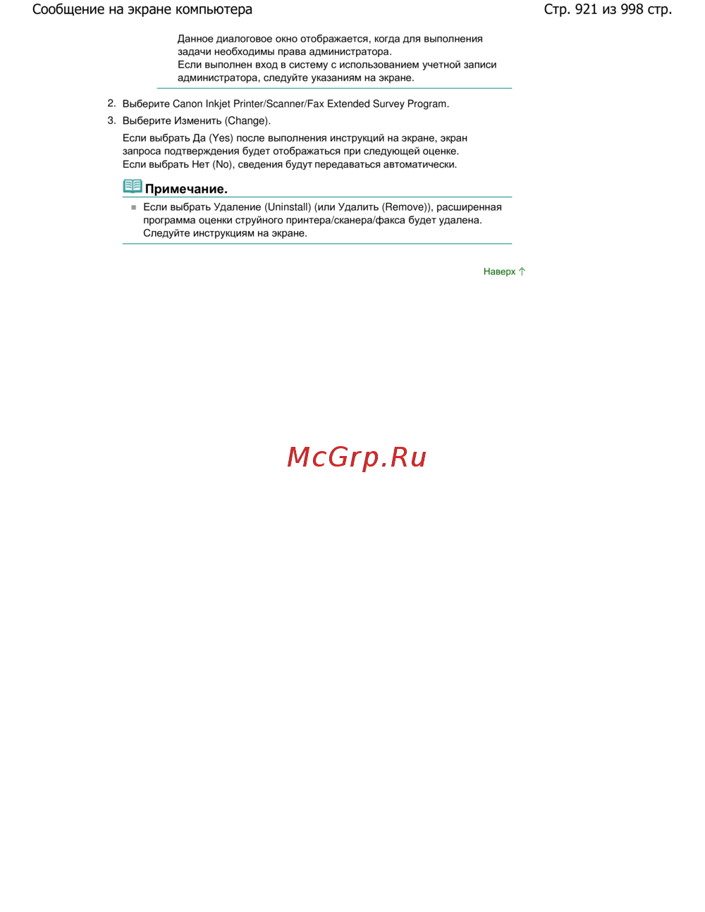 Canon Pixma MG5140 — сообщение на экране компьютера: Инструкция по администраторским правам и программам [921/998]