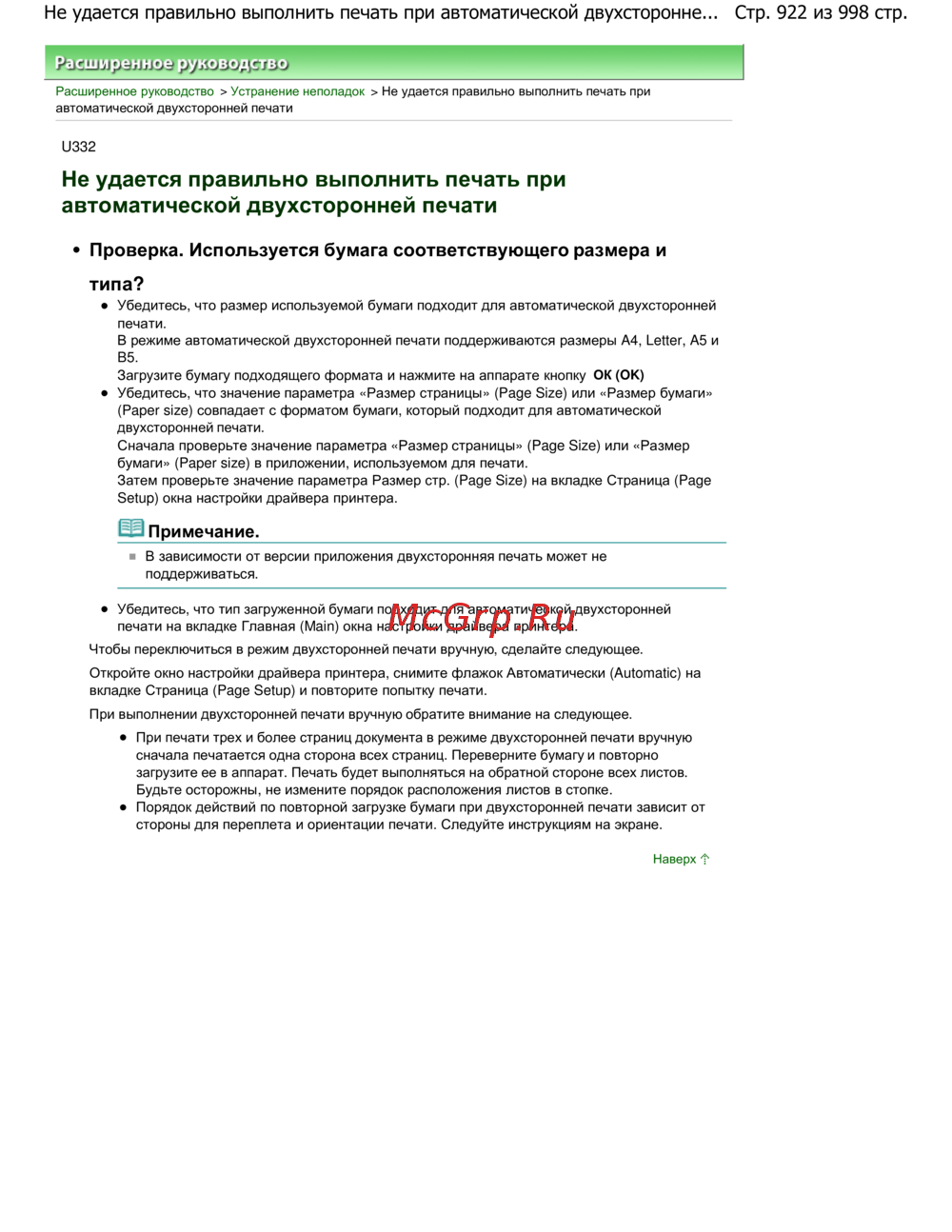 Стр. 922 из 998 стр.Не удается правильно выполнить печать при автоматической двухсторонне...