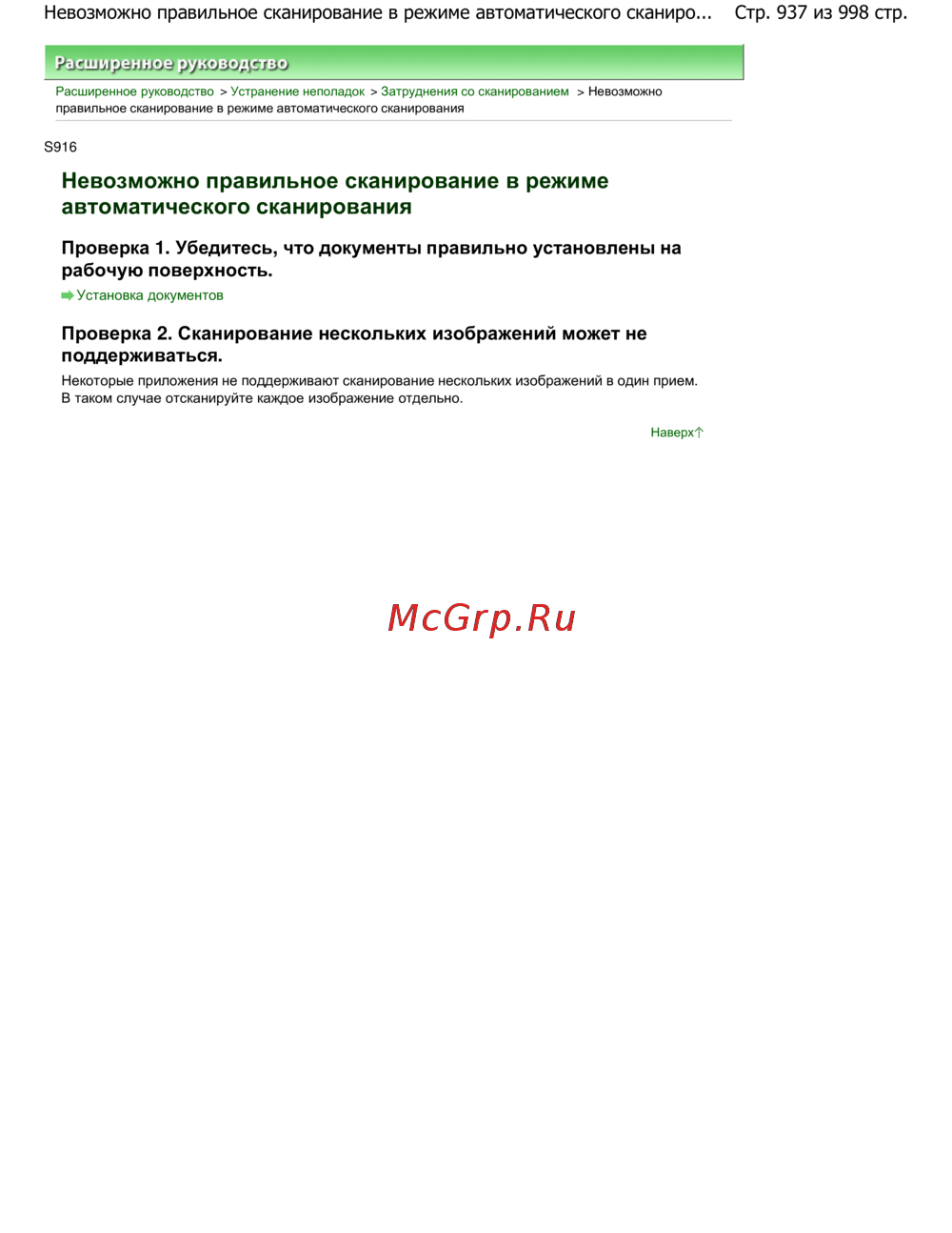 Стр. 937 из 998 стр.Невозможно правильное сканирование в режиме автоматического сканиро...