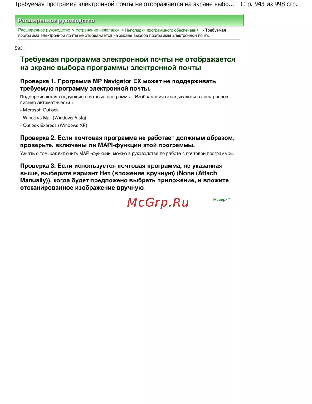 Canon Pixma MG5140 — устранение неполадок с программами электронной почты: руководство [943/998]