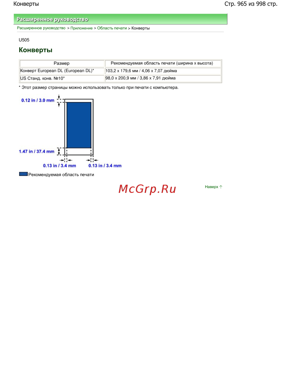 Рекомендуемая область печати