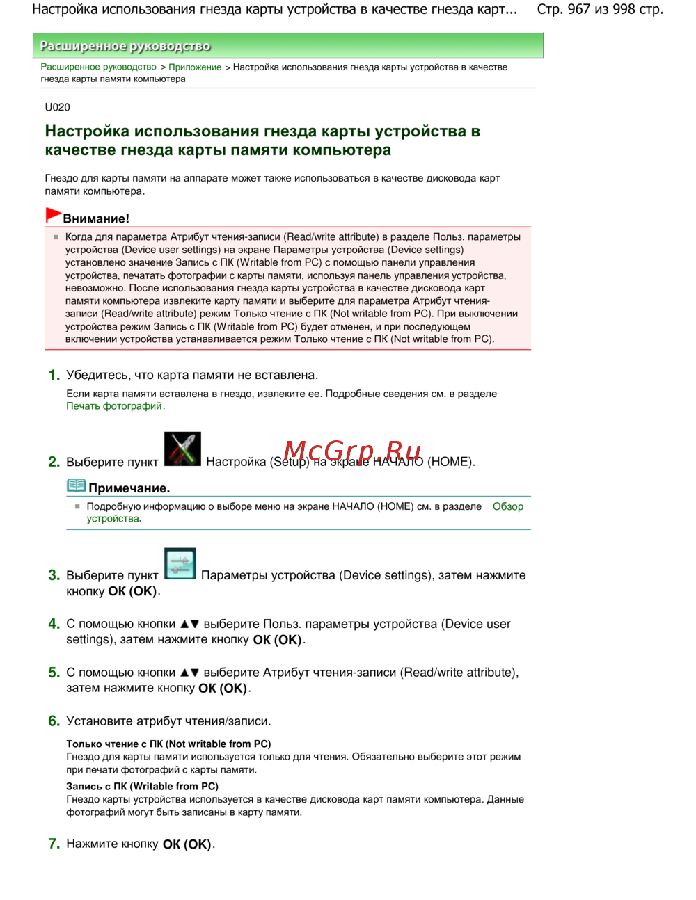 Canon Pixma MG5140 — настройка использования гнезда карты устройства для компьютера [967/998]
