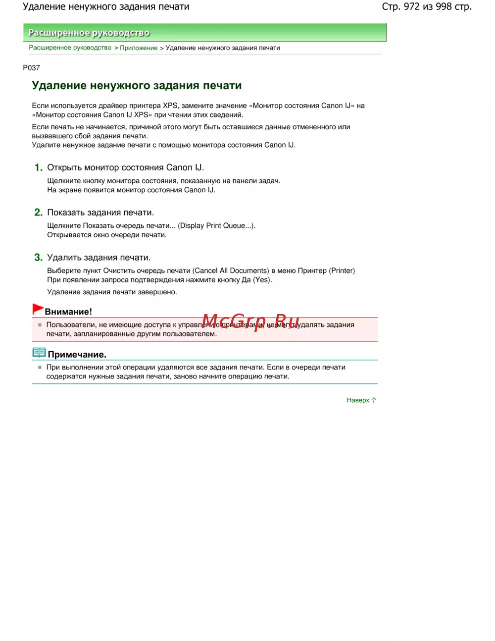 Стр. 972 из 998 стр.Удаление ненужного задания печати