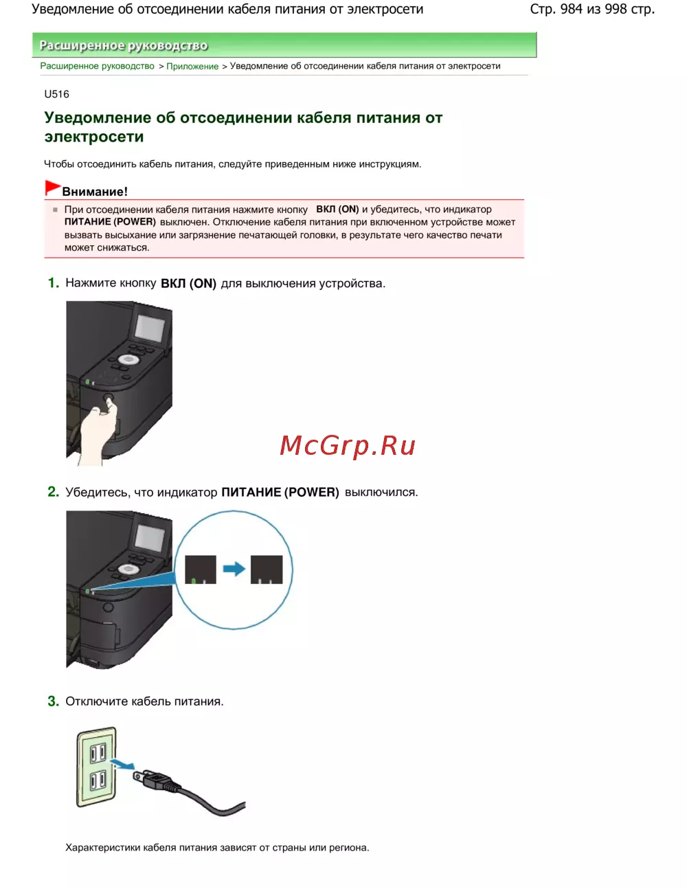 - Стр 984 из 998 стр уведомление об отсоединении кабеля питания от электросети p.984