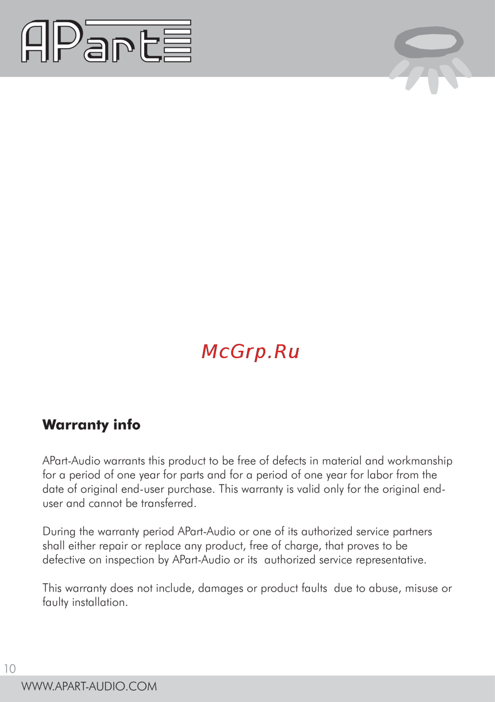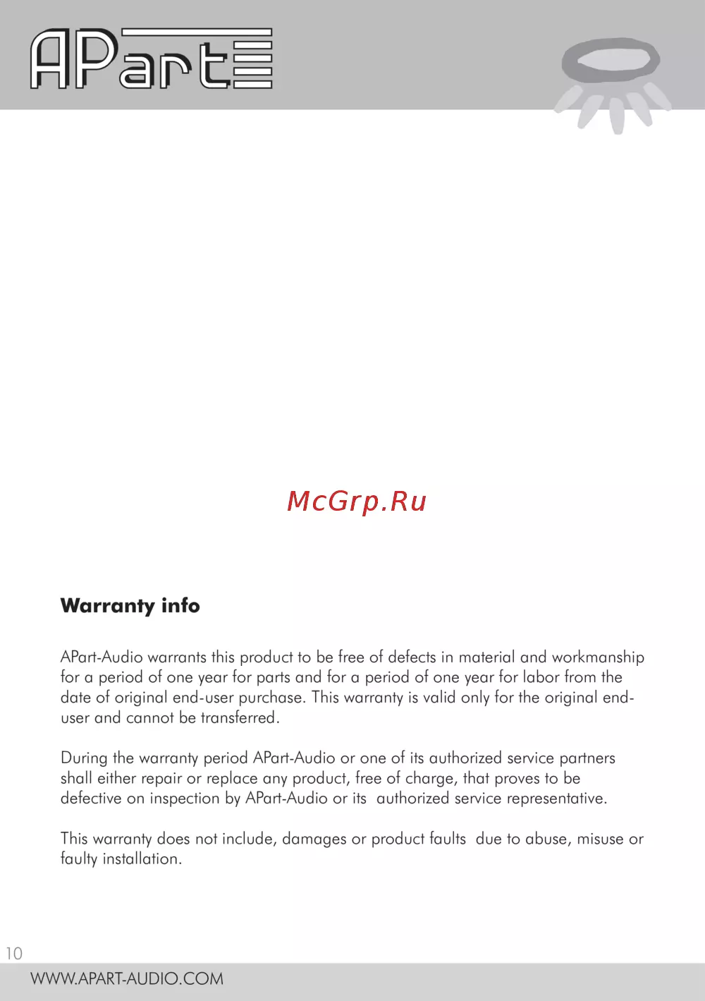 ![APart CMAR6-W [10/12] Warranty info](/views2/2013672/page10/bga.png)