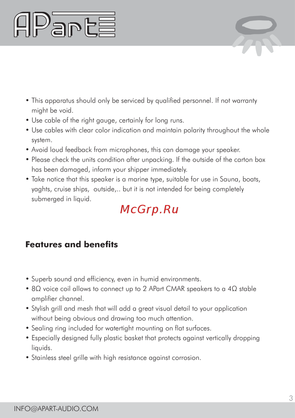 ![APart CMAR6-W [3/12] Features and benefits](/views2/2013672/page3/bg3.png)