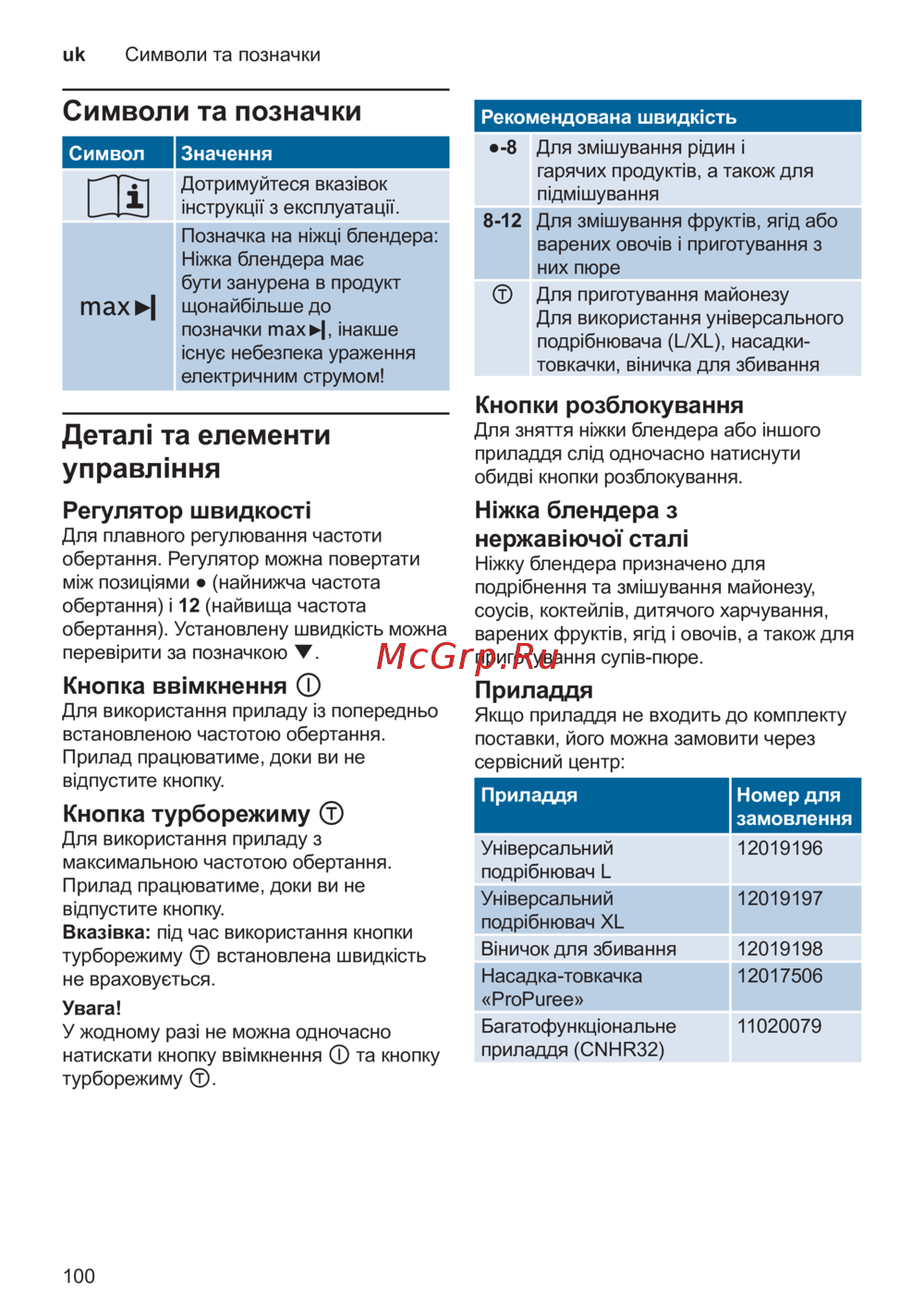 - Ни в коем случае не ставить ножку блендера на горячие p.106