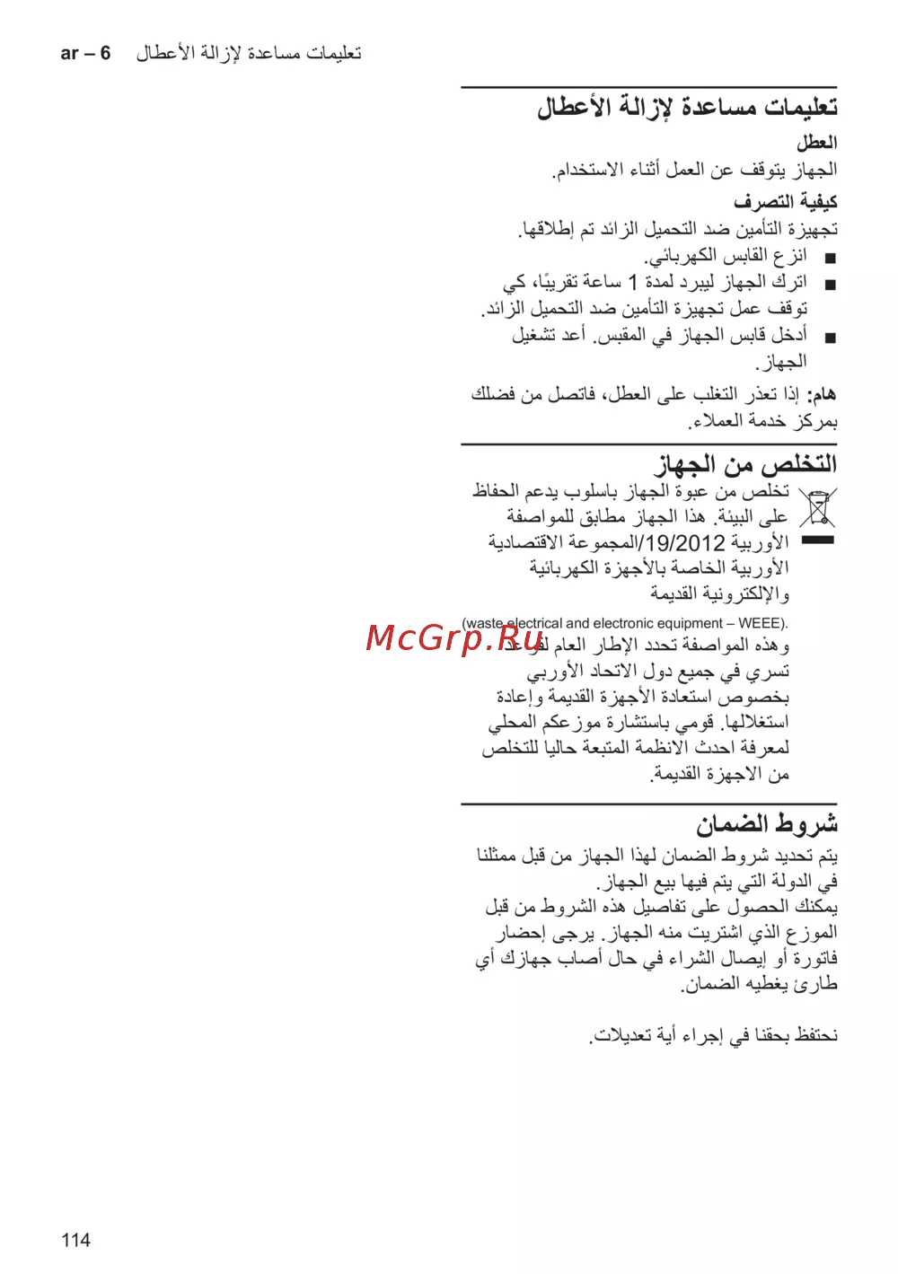 - لﺎطﻋﻷا ﺔﻟازﻹ ةدﻋﺎﺳﻣ تﺎﻣﯾﻠﻌﺗ p.114