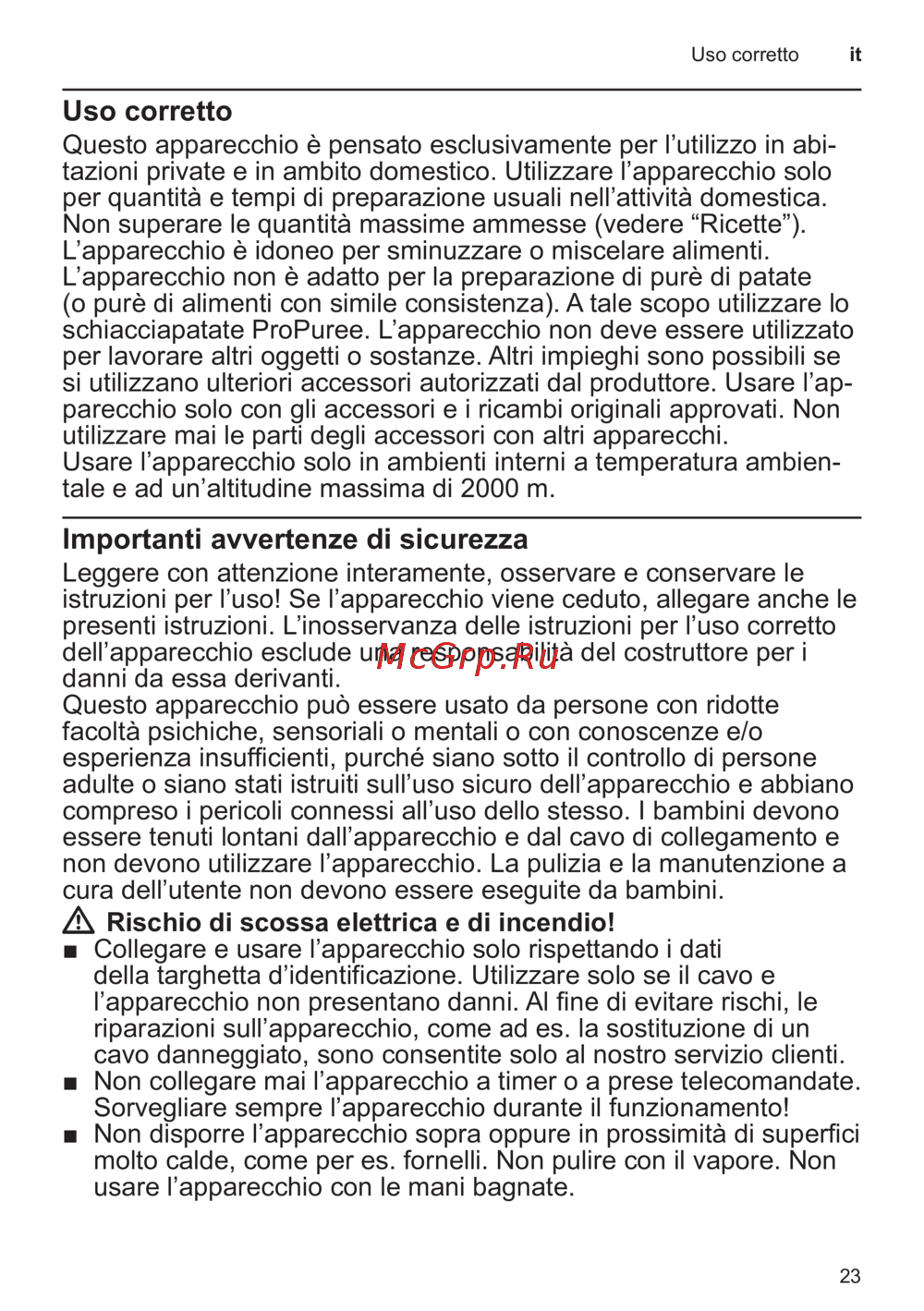 schiacciapatate ProPuree. L’apparecchio non deve essere utilizzato