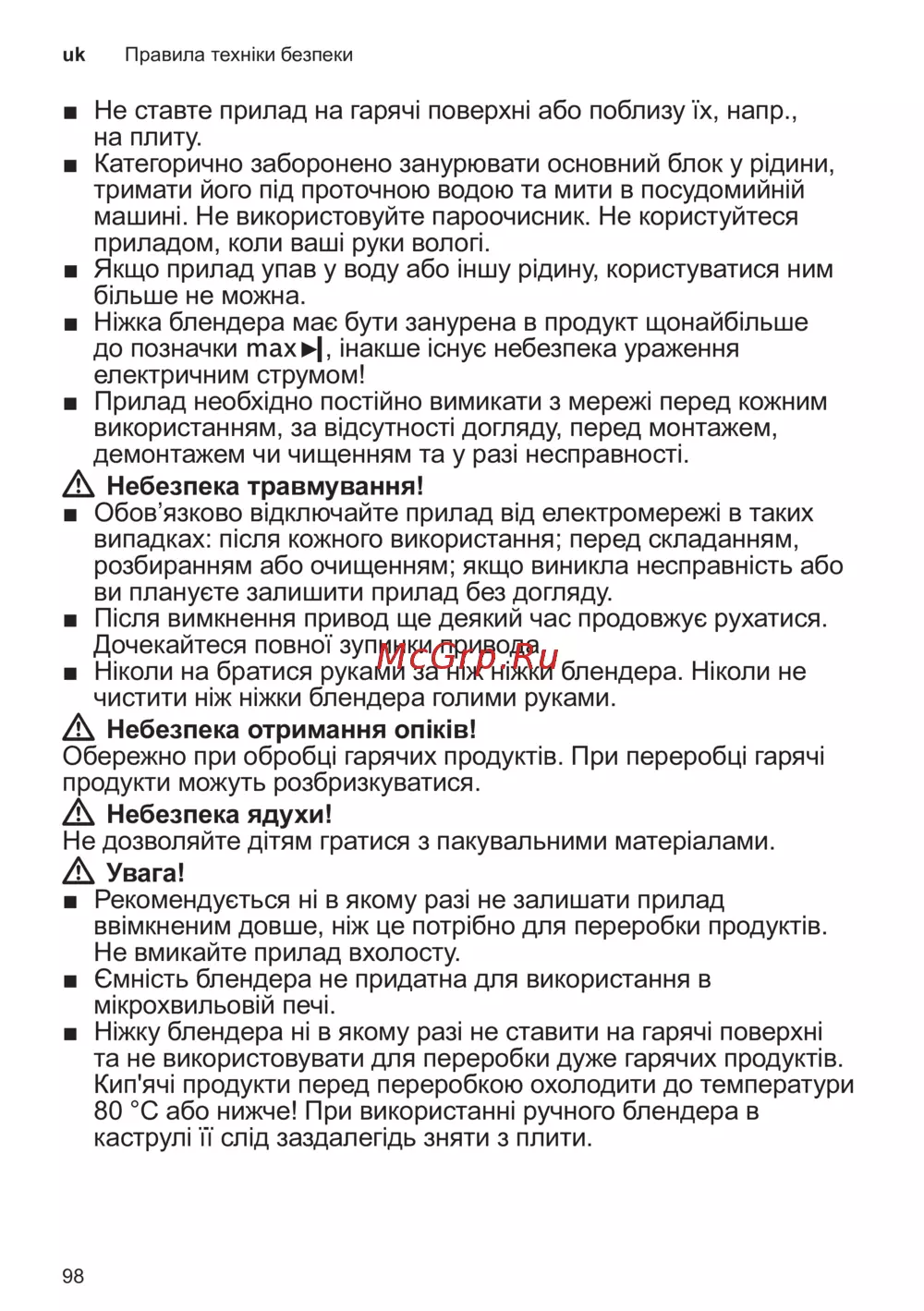 ■ Ніжку блендера ні в якому разі не ставити на гарячі поверхні